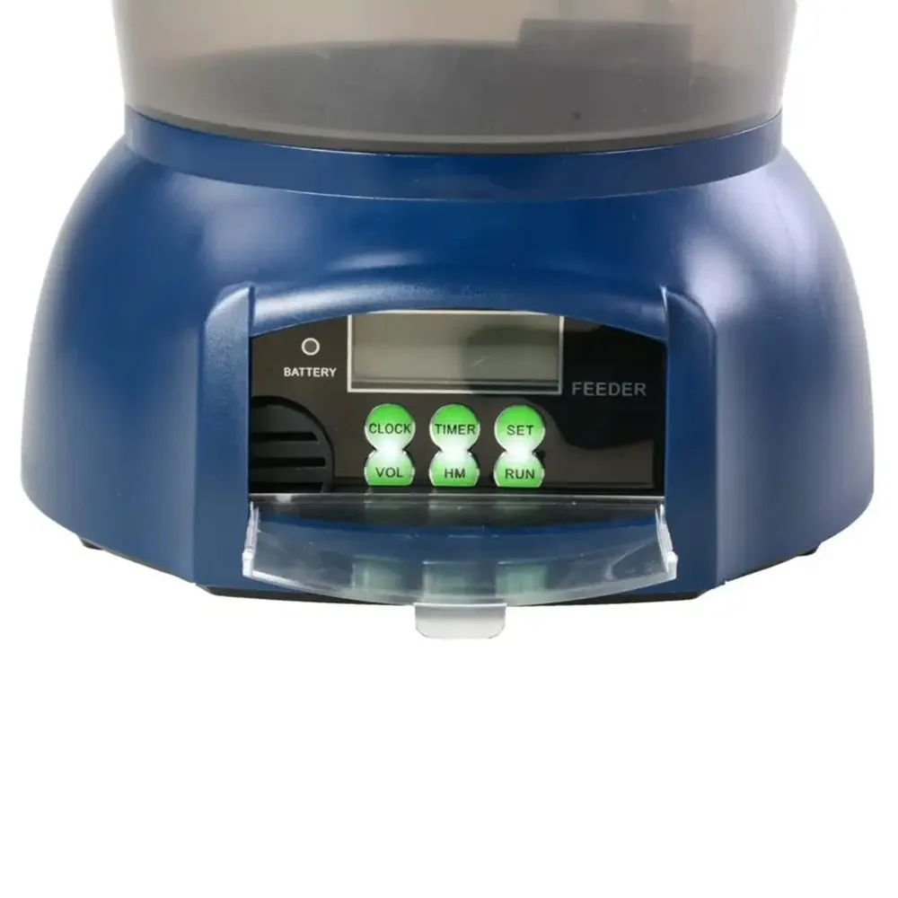 Krmítko disponuje přehledným LED displejem, který zobrazuje aktuální čas i parametry krmení. Indikátor slabé baterie vás včas upozorní na potřebu výměny baterií. Napájení je možné buď přes 4 baterie typu C (nejsou součástí balení) nebo pomocí dodávaného 12 V transformátoru.