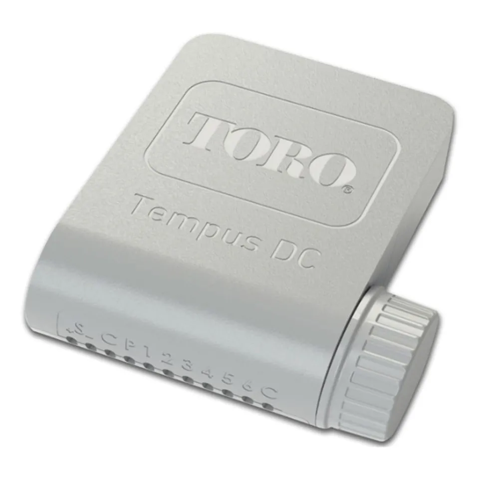Toro TEMPUS DC je bateriová řídicí jednotka pro ovládání čtyř sekcí, ideální pro místa bez elektrického připojení. Vhodná pro menší zahrady, trávníky, skleníky, kapkovou závlahu. Díky krytí IP68 odolává vlhkosti i náročným venkovním podmínkám, takže ji lze instalovat do ventilové šachty nebo přímo na elektromagnetický ventil s 9 V cívkou.