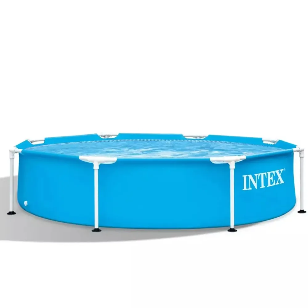 Kulatý zahradní bazén Intex s objemem 2 m³ zaujme modrým designem a pevnými ocelovými rámy s ochrannou zinkovou vrstvou proti korozi. Poskytuje spolehlivé a pohodlné koupání po celou letní sezónu.