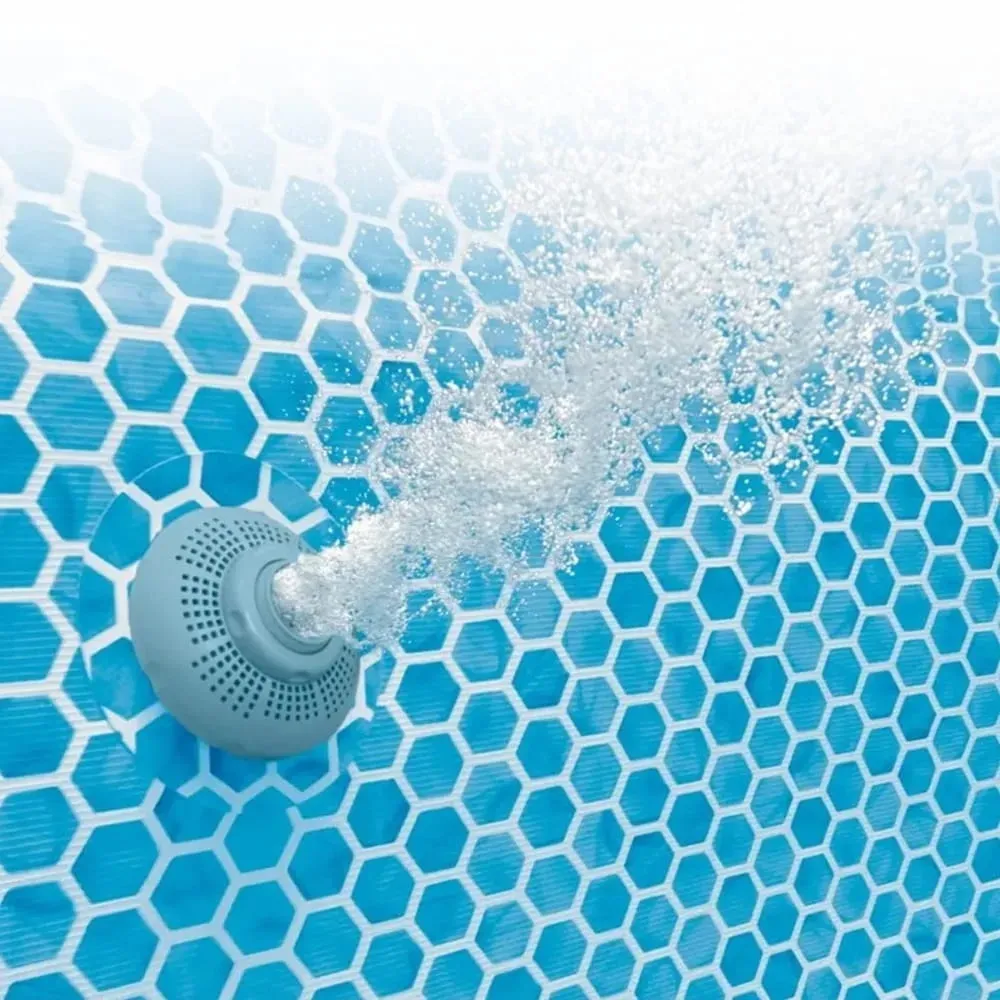Bazén je tvořen pevnou kovovou konstrukcí Prism Frame, která se skládá ze samostatných dílů propojených praktickými T-spoji. Díky tomuto řešení je konstrukce stabilní, odolná a zároveň snadno sestavitelná. Vnitřní vložka je vyrobena z třívrstvého PVC materiálu Super Tough, který je navržený pro dlouhodobý kontakt s vodou a běžné bazénové používání.