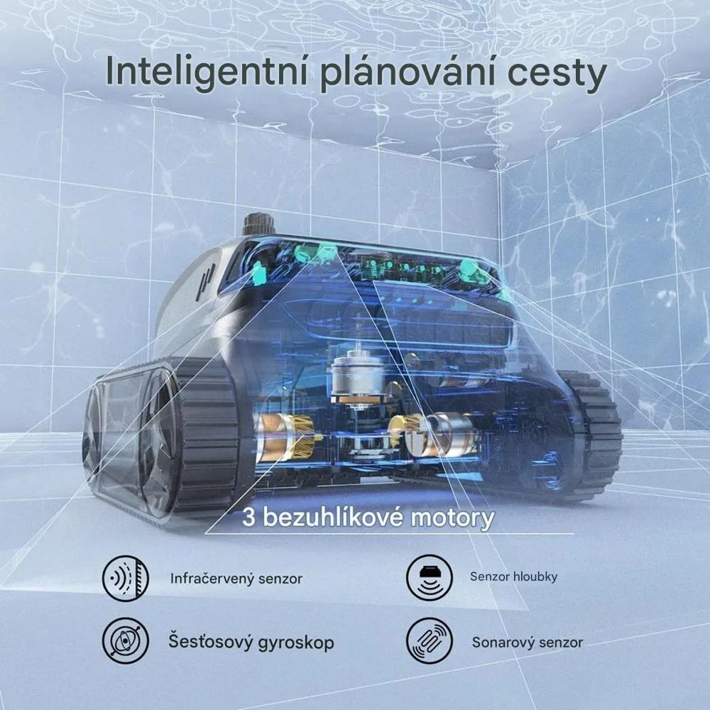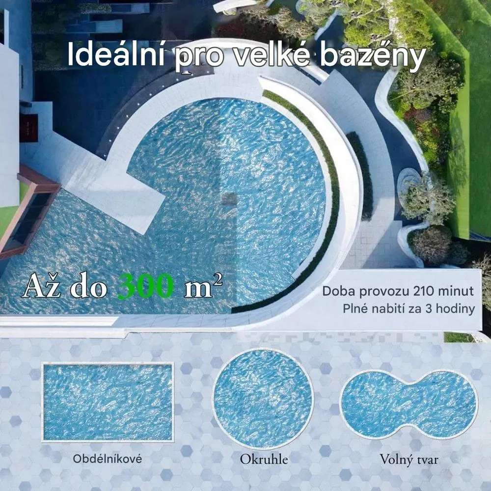 Pokročilé gyroskopy a hloubkové senzory umožňují robotu "vidět" váš bazén a plánovat tak nejefektivnější čisticí trasu - Dlouhá výdrž a rychlé nabíjení
