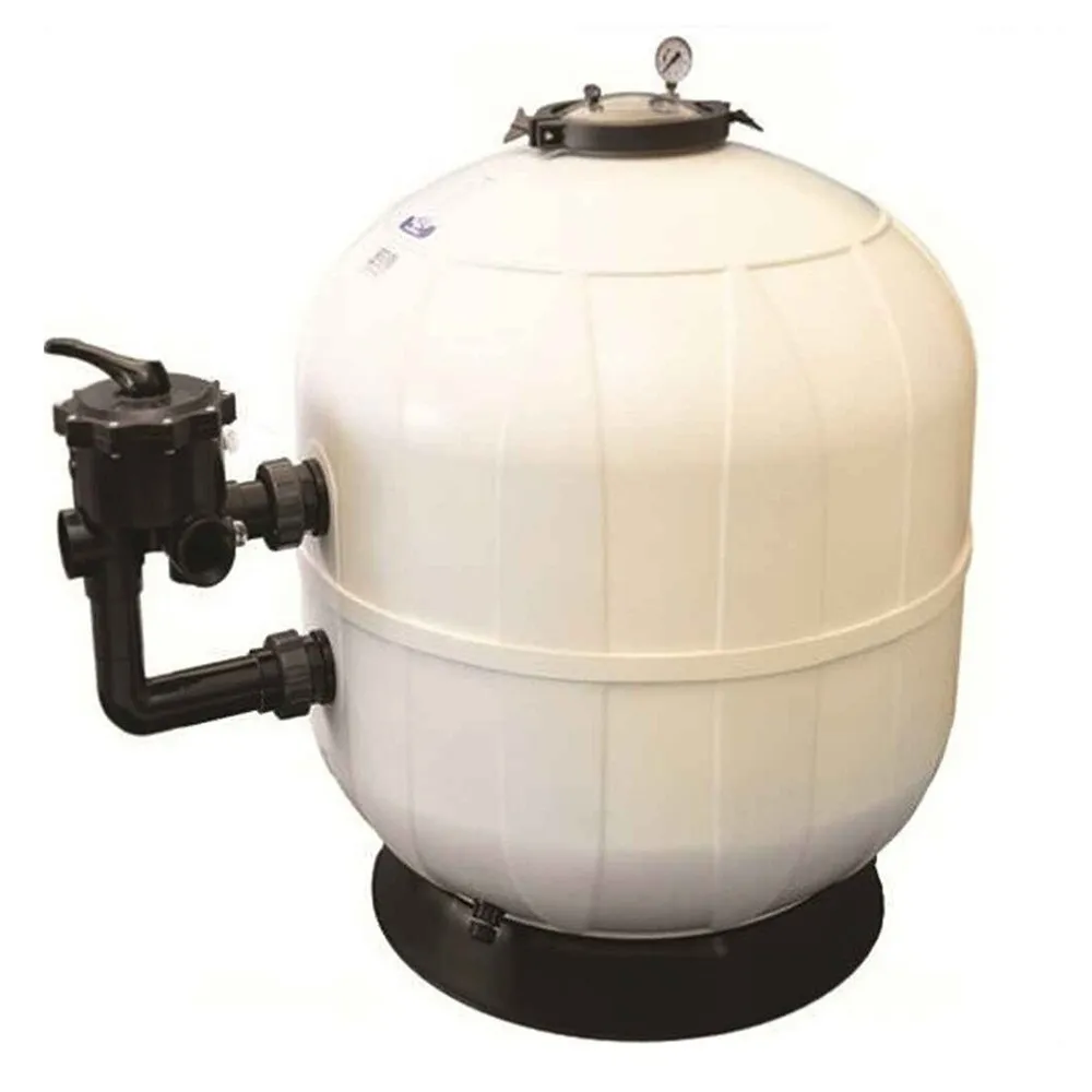 Díky 6cestnému ventilu lze jednoduše přepínat mezi režimy filtrace, proplachu nebo recirkulace, což usnadňuje údržbu a prodlužuje životnost náplně. Boční připojení a glycerinový manometr pro kontrolu tlaku zajišťují pohodlný a bezpečný provoz.