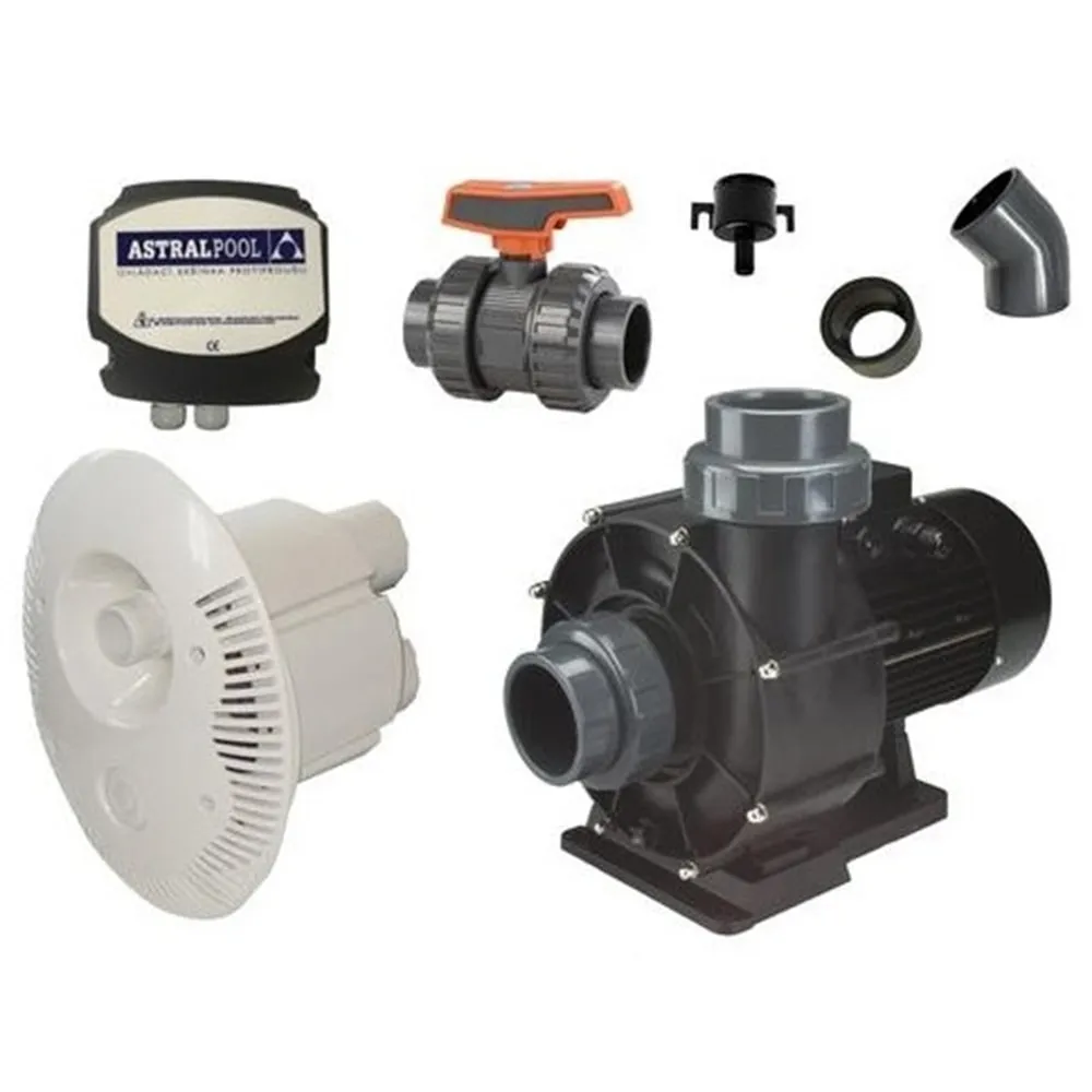 Vestavný protiproud V-JET je kompletní zařízení určené pro fóliové a předvyrobené bazény, které kombinuje výkonný tok vody s komfortní regulací. Díky trysce o průměru 40 mm s možností regulaci průtoku vody (vnitřní tryska) můžete upravit jak sílu proudu, tak množství přisávaného vzduchu (vnější tryska) přímo během koupání.