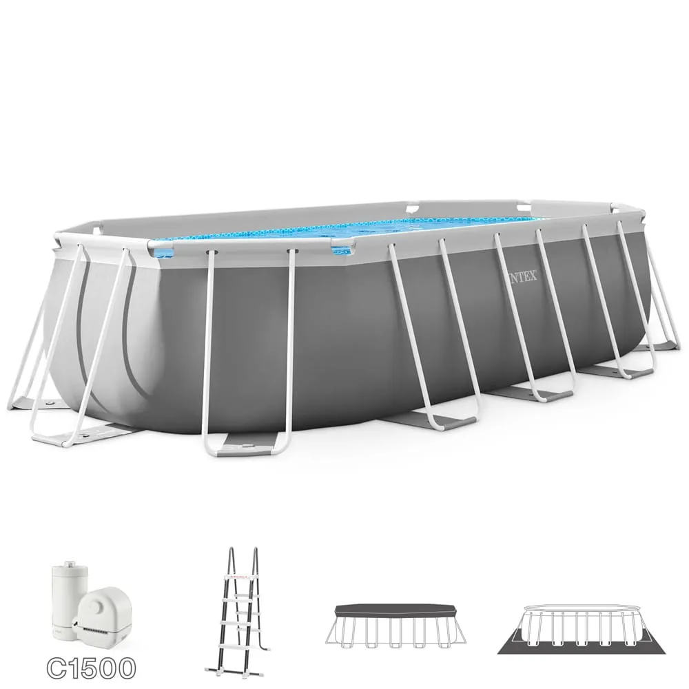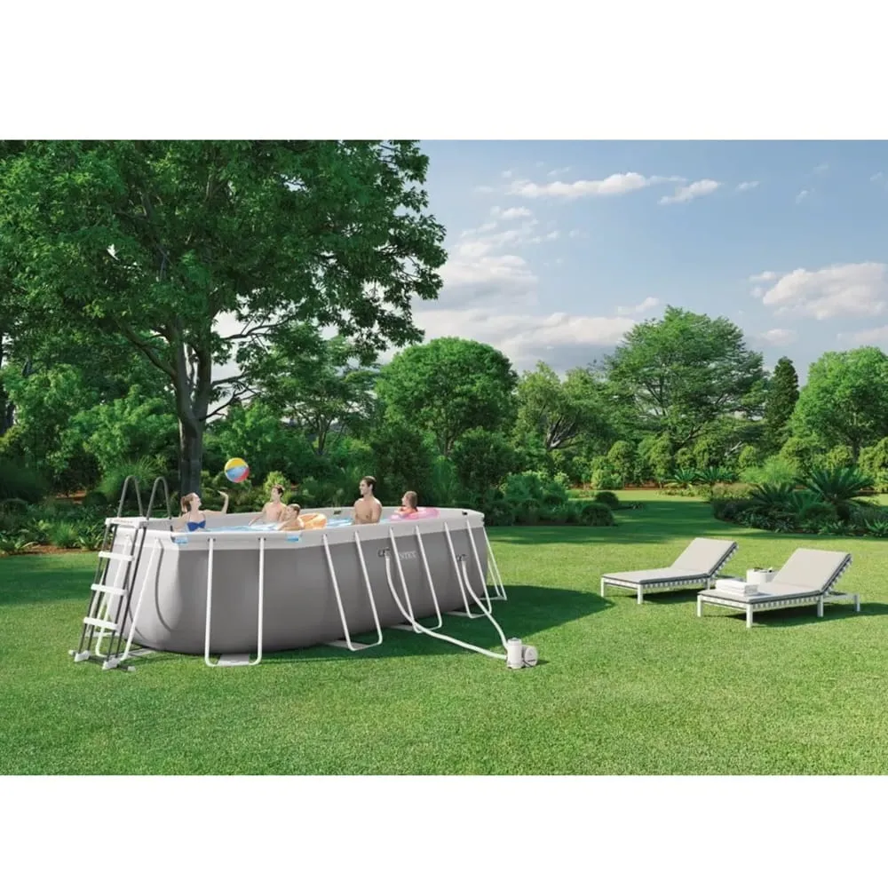 Obdelníkový bazén Intex s objemem 18 m³ zaujme moderním světle šedým designem a pevnou rámovou konstrukcí Prism Frame s ochrannou zinkovou vrstvou proti korozi. Poskytuje spolehlivé a pohodlné koupání po celou letní sezónu.