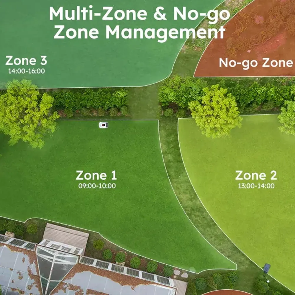 Díky tomu sekačka dokáže přizpůsobit reálnému prostředí zahrady a bezpečně se pohybovat mezi stromy, záhony nebo zahradním nábytkem. Systém zároveň optimalizuje trasu sekání tak, aby byl trávník posečen co nejefektivněji.
