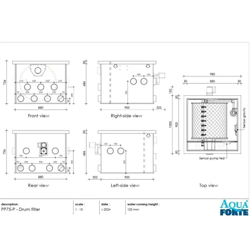 AquaForte Prime PP80-P je profesionální bubnový filtr určený proprovoz jezírek a KOI nádrží. Robustní polypropylenová konstrukce a pokročilá řídicí jednotka zajišťují vysoce účinné mechanické předčištění s minimální údržbou.