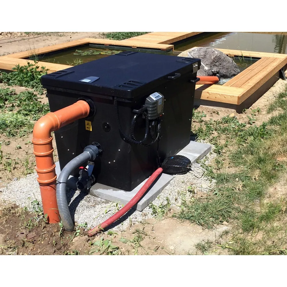 • Mytí filtru se provádí výhradně čištěnou vodou z jezírka. Tudíž není vyžadován žádný přívod vody.