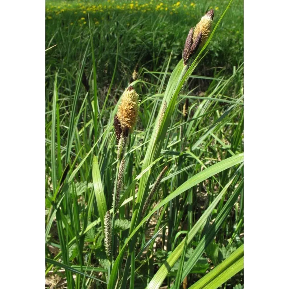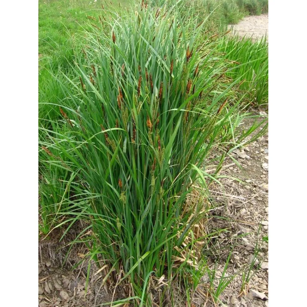Jedná se o rostlinu dosahující výšky nejčastěji 40–120 cm., Je vytrvalá, netrsnatá s plazivými oddenky a dlouhými výběžky. Šedozelené listy jsou střídavé, přisedlé, s listovými pochvami, na bázi čepele je na vrcholu špičatý jazýček. Lodyha je ostře trojhranná, stejně dlouhá nebo kratší než listy. Černohnědý klas.
