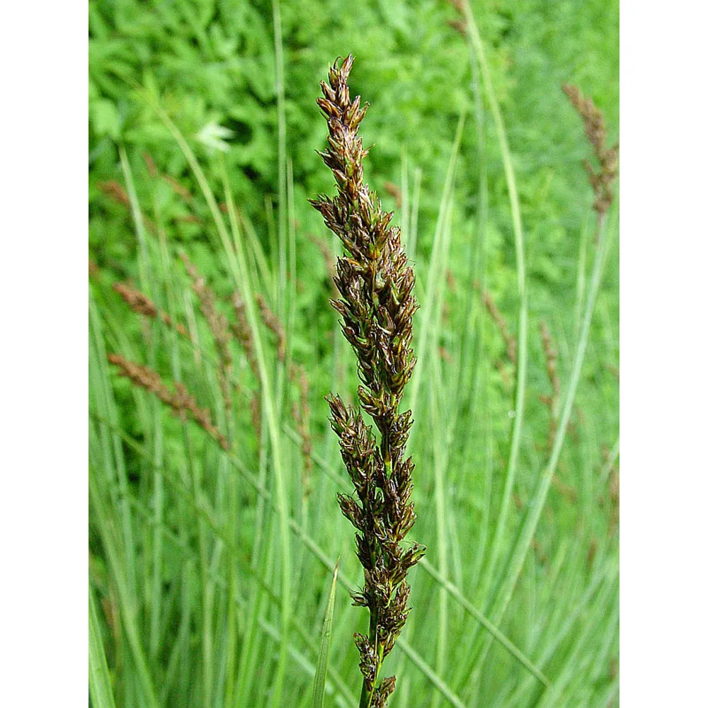 Jedná se o rostlinu dosahující výšky nejčastěji 40-100 cm. Je vytrvalá a vytváří výrazné trsy. Listy jsou střídavé, přisedlé, s listovými pochvami. Lodyha je trojhranná se žlábky, silně drsná, o málo delší než listy. Široce rozložité trsy.
