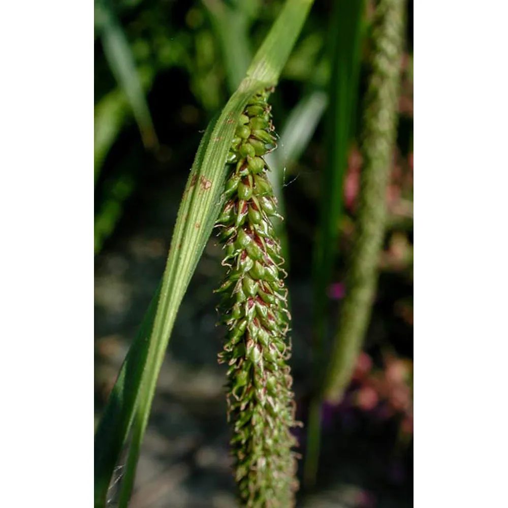 Stálezelená mohutná ostřice, narůstá do výšky 80-160cm. List temně zelený, na koncích lehce převislý. Květ hnědý až černý, vyčnívající vysoko nad listy. Květ vyčnívá až 50cm nad listovou růžicí. Stanoviště polostín snese však i trvalý stín. Pokud je půda dostatečně zásobena vodou snese i slunné stanoviště. Na zimu je lépe chránit kořenový a krček a před příchodem zimy dostatečně zalévat. Po zimě odstranit odumřelé listy, nebo celou rostlinu seříznout na 8-10cm. Ostřice bez problémů obrazí.