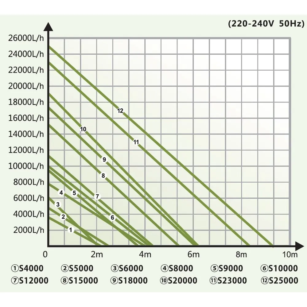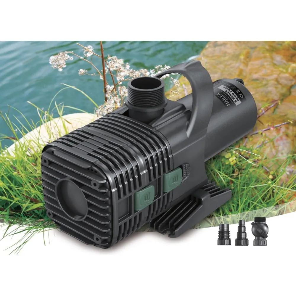 Hailea S-18000 je výkonné jezírkové čerpadlo určené pro filtrační systémy, biotopy, potoky, kaskády i vodopády. S průtokem 17350 l/h, výtlakem 6,1 m a příkonem 285 W nabízí ideální kombinaci výkonu, úsporného provozu a dlouhé životnosti.
