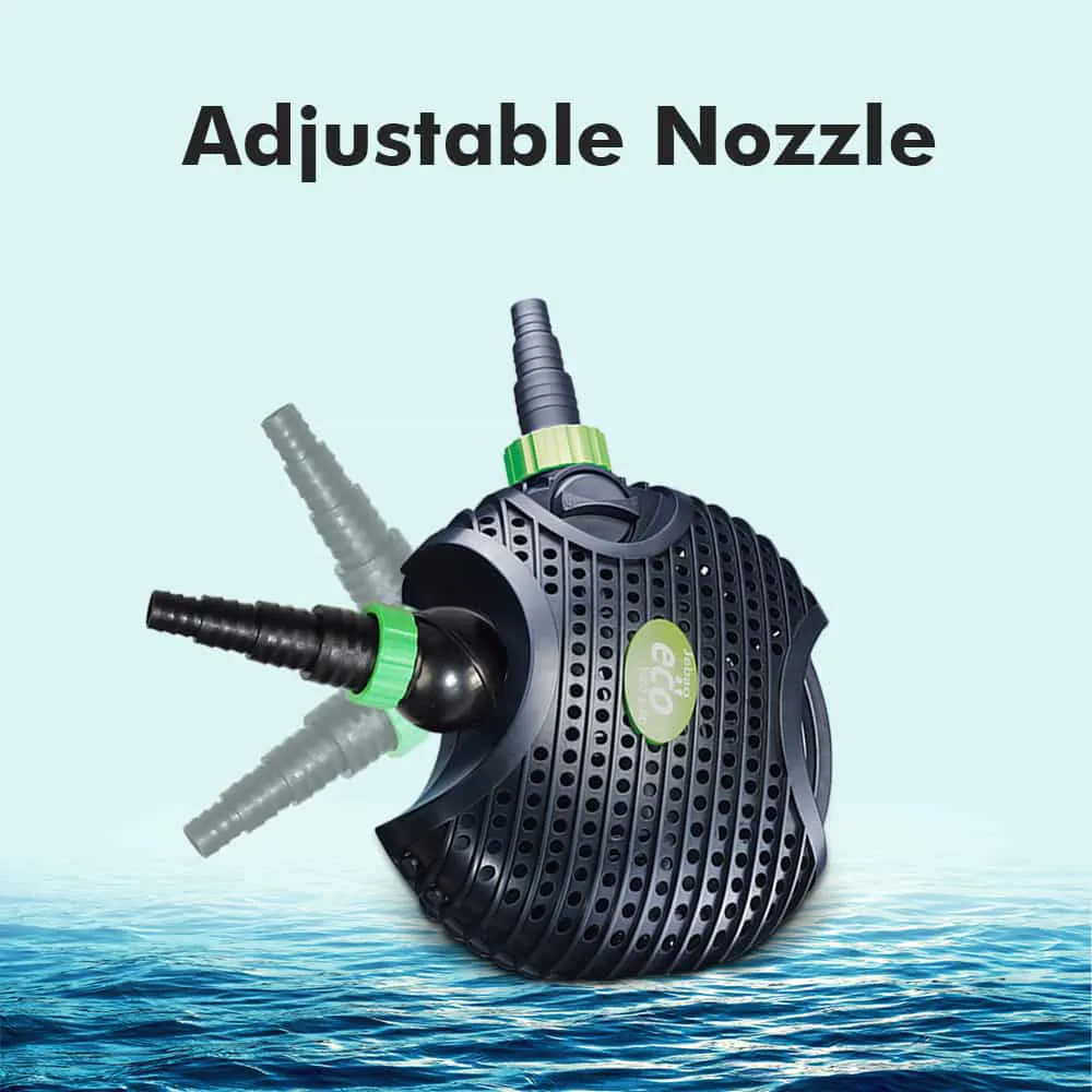 Energeticky úsporné čerpadlo AMP 10000 s inovativní elektronikou a asynchronním motorem Jebao z řady AMP patří k velmi zdařilým čerpadlům svou funkcí dvojitého sání, velkým výkonem a úsporou energie. Výkon druhého sání se dá snadno a plynule regulovat. Pokud je druhé sání nevyužité, stačí jen uzavřít ventil. Tímto způsobem nejlépe docílíme správné filtrace jezírka, vodu můžeme stahovat souběžně ze dvou míst.