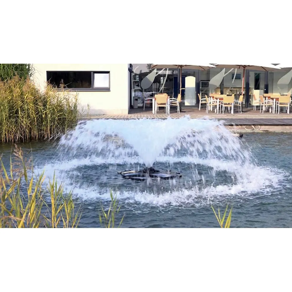 Plovoucí fontánové čerpadlo OASE AirFlo 4,0 kW spojuje dekorativní vodní efekt s účinným provzdušňováním vody. Čerpadlo dosahuje průtoku až 295 000 l/h a výstřiku až 5 m. Výsledkem je silný proud vody, který zajišťuje intenzivní okysličení jezírka a zlepšuje podmínky pro ryby i vodní rostliny.
