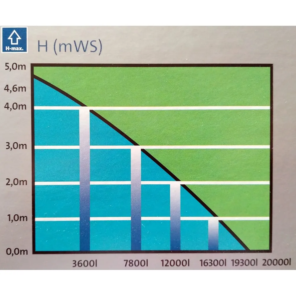 Průtok 19300 l/h a výtlak 4,6 m - Dvojitá ochrana motoru (EFC)