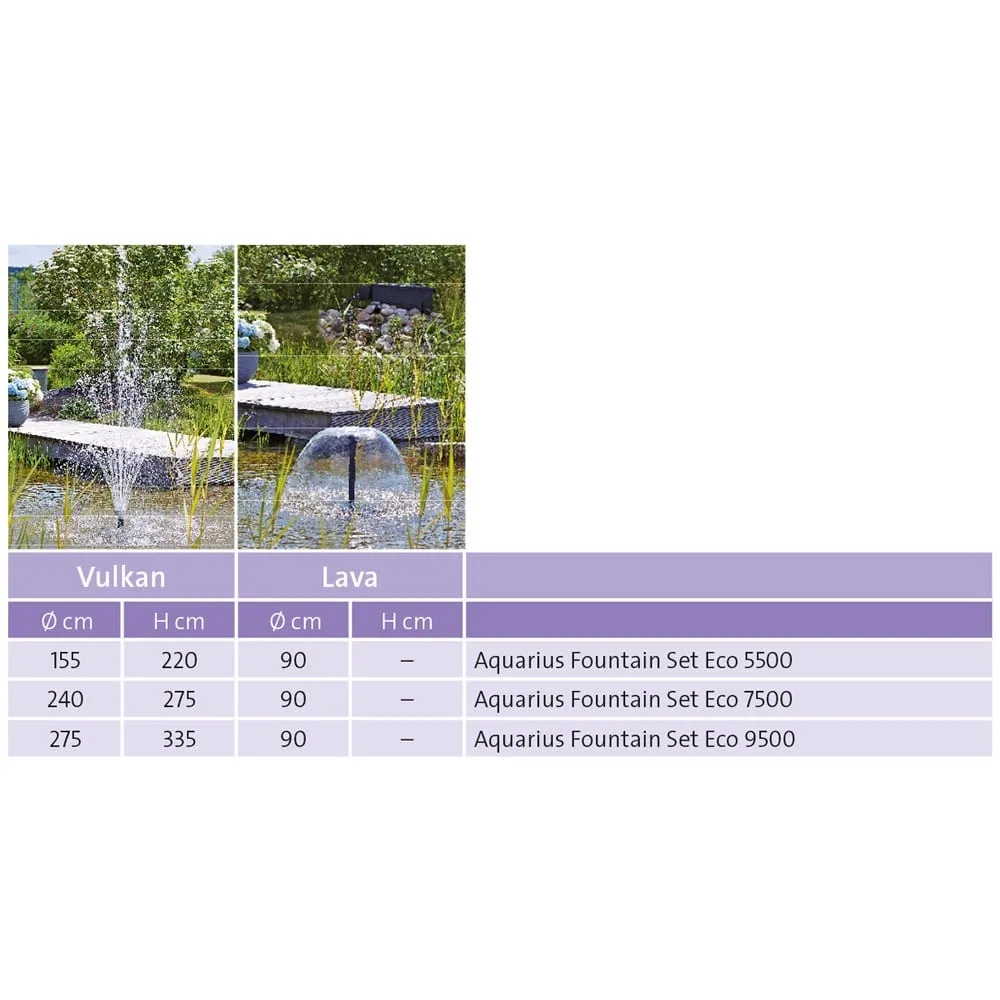Fontánové čerpadlo OASE Aquarius Fountain Set Eco 5500 přináší spojení silného výkonu a úsporného provozu pro tvorbu dekorativních vodních efektů v zahradních jezírkách. S průtokem 5500 l/h a výtlakem až 3,8 metru dokáže vytvářet působivé fontány.