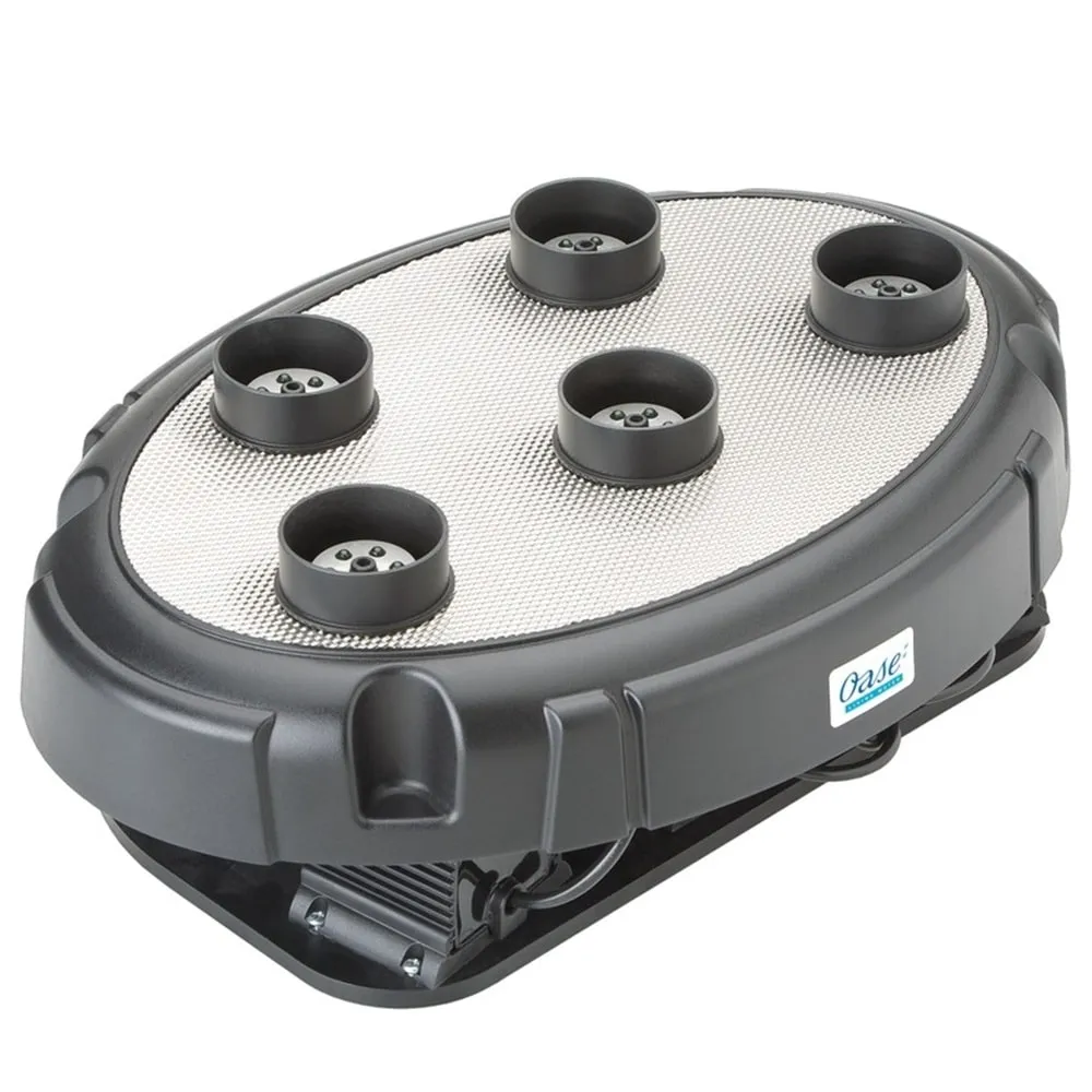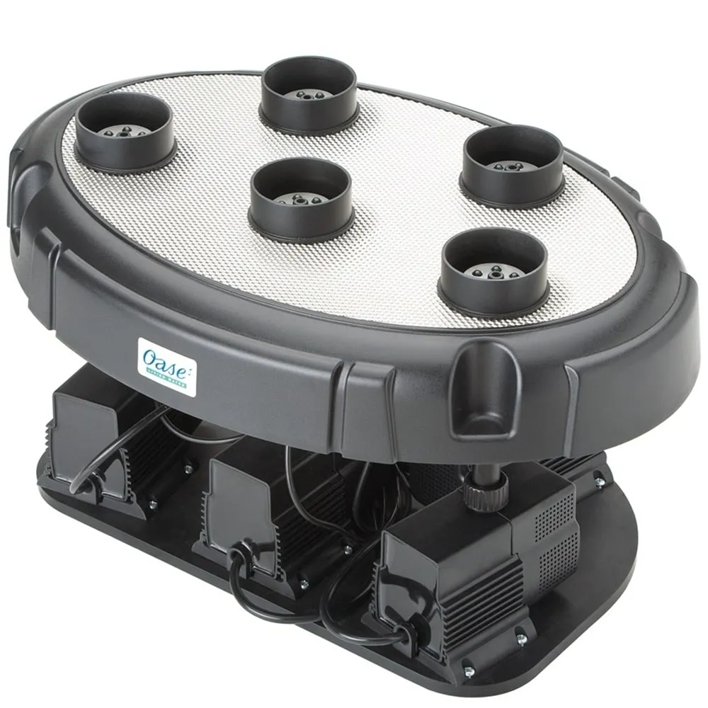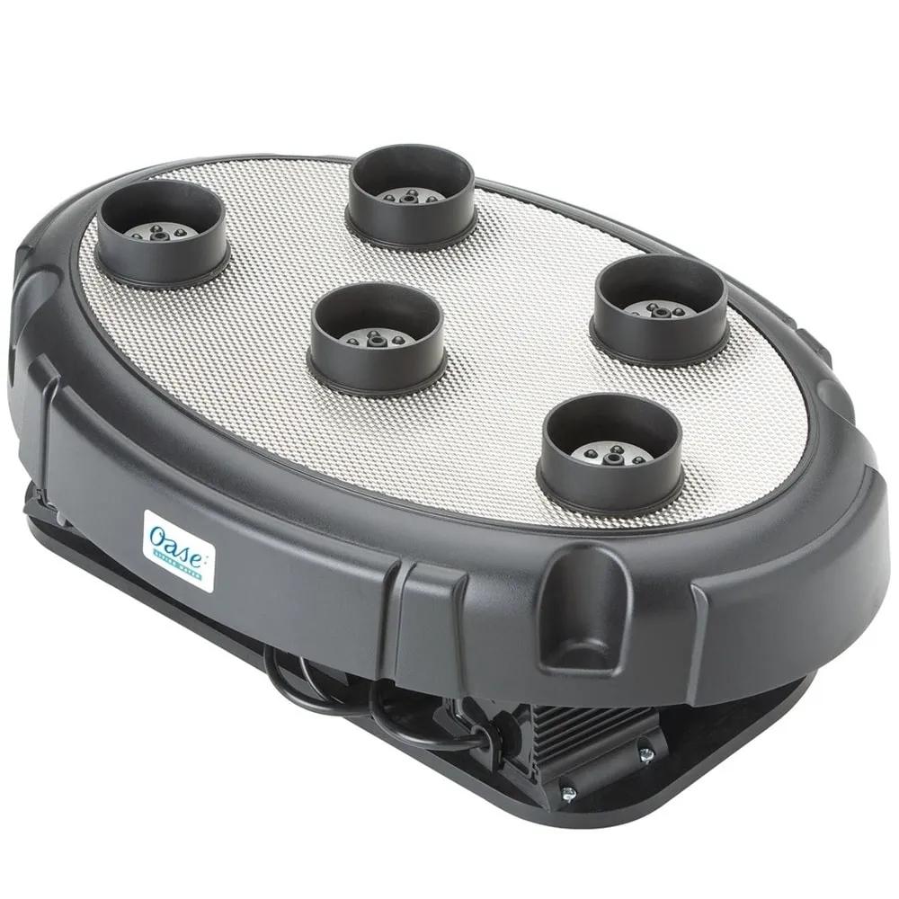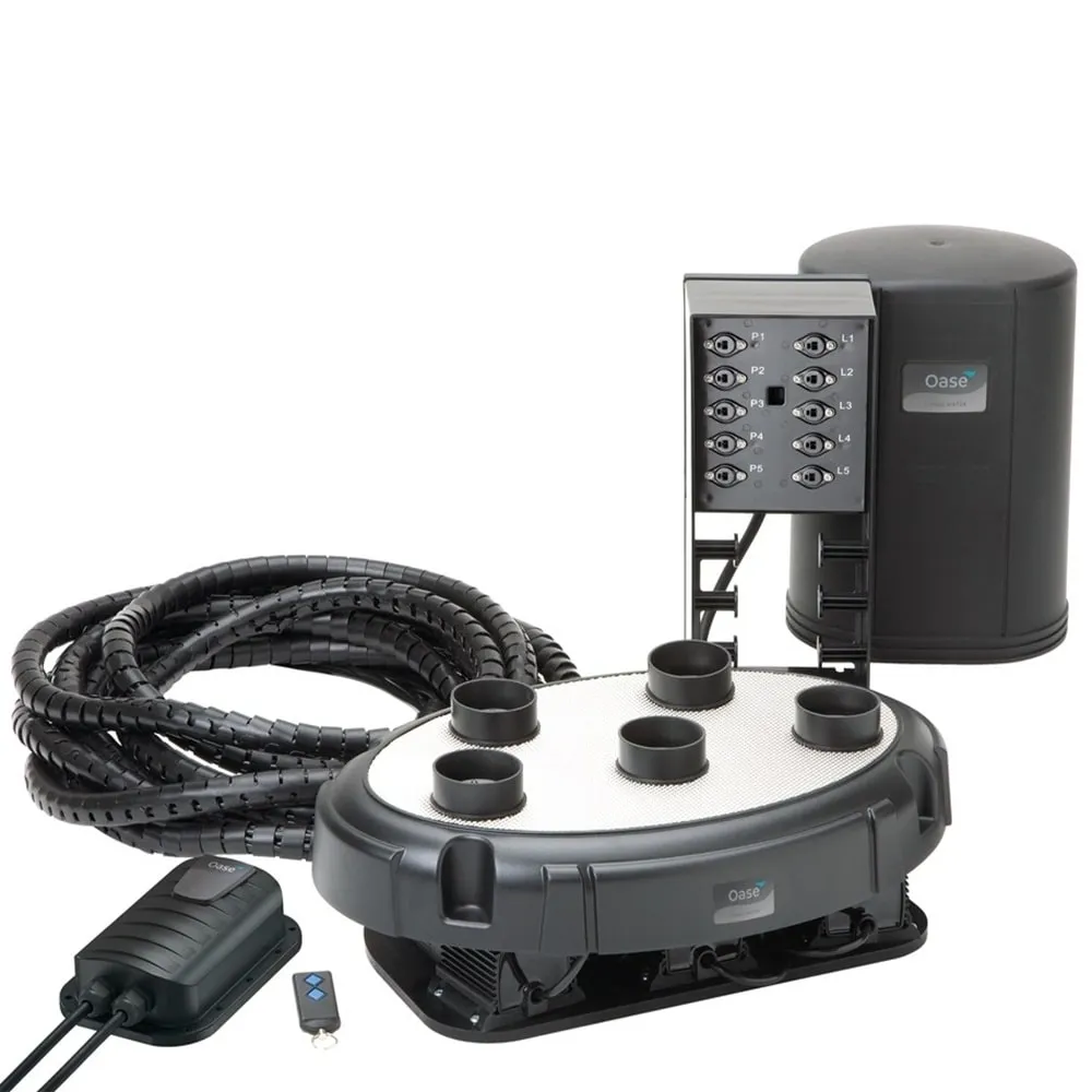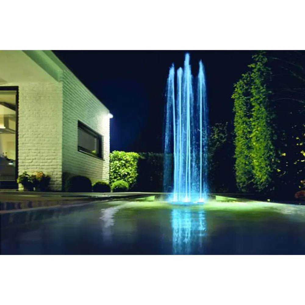 Fontánová sada OASE Water Quintet přináší pět elegantních, LED osvětlených vodních paprsků, které se proměňují v působivé obrazce s jemným bílým světlem. Díky výšce výstřiku až 1,4 metru a samostatnému řízení každé trysky vytváří moderní vodní show vhodnou pro zahradní jezírka, terasy i koupací zóny.