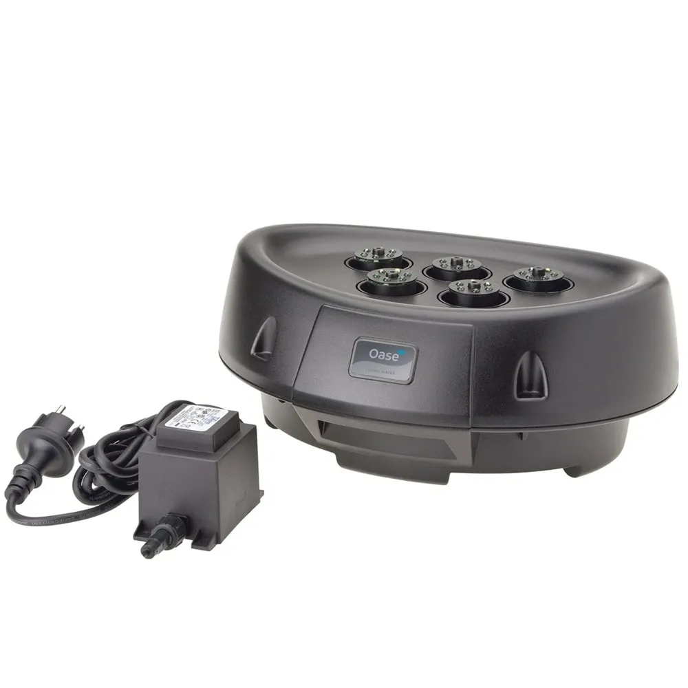 Fontánový set OASE Water Starlet okamžitě oživí jezírko působivým tancem vody a světla. Pět samostatných trysek s integrovaným LED osvětlením vytváří proměnlivé vodní obrazy, které vyniknou zejména při soumraku a v noci. Každá tryska je individuálně nastavitelná, takže směr proudu vody lze snadno přizpůsobit konkrétnímu umístění nebo typu nádrže.