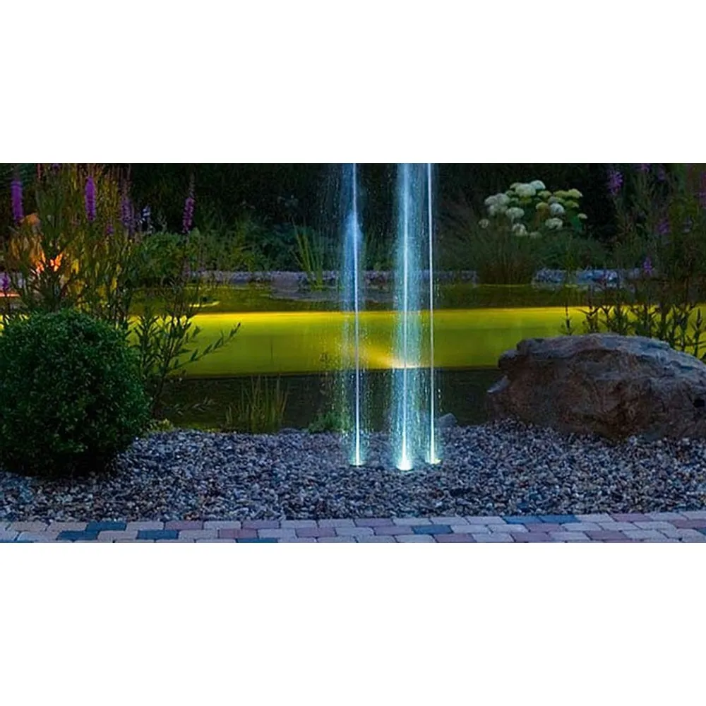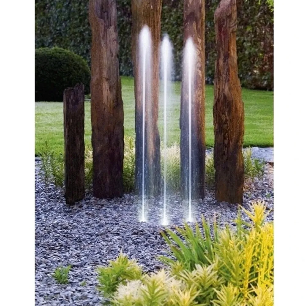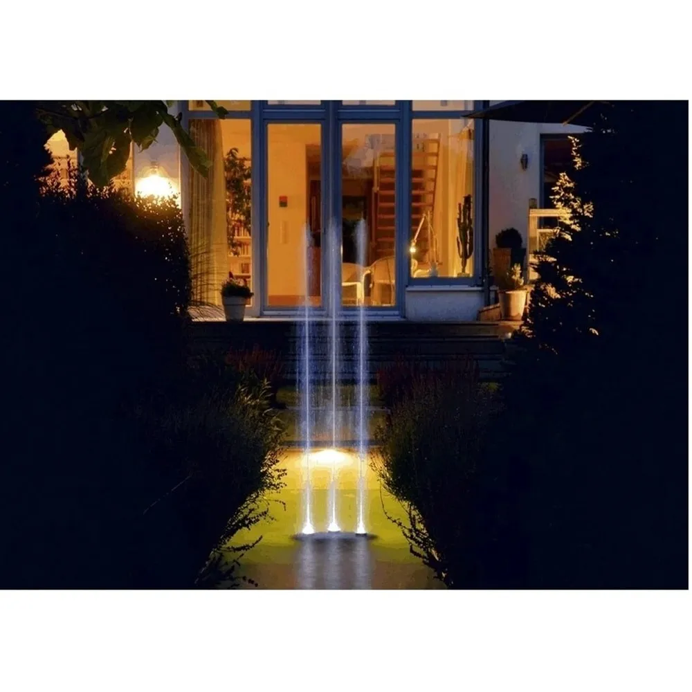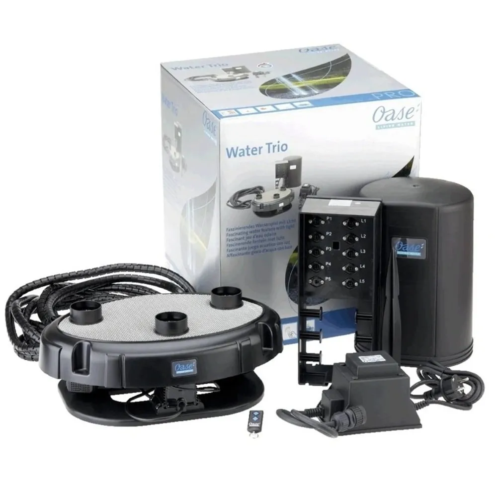 Fontánová sada OASE Water Trio přináší tři elegantní, LED osvětlené vodní paprsky, které se proměňují v působivé obrazce s jemným bílým světlem. Díky výšce výstřiku až 1,4 metru a samostatnému řízení každé trysky vytváří moderní vodní show vhodnou pro zahradní jezírka, terasy i koupací zóny.