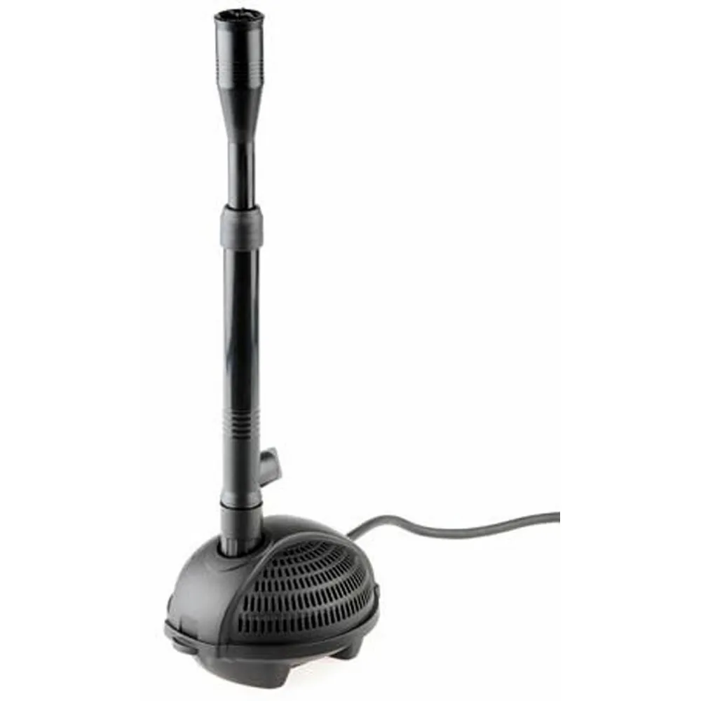 Teleskopický výstup s kulovým kloubem umožňuje přesné nastavení výšky i směru proudění vody, a to i v různě hlubokých jezírcích. Čerpadlo je vybaveno filtračními drážkami pro zachytávání hrubších nečistot a poskytuje i připojení pro zásobování potoka nebo filtru.