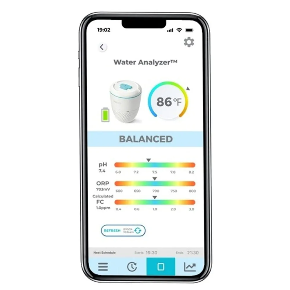 Zařízení průběžně vyhodnocuje naměřené hodnoty a v případě potřeby vás upozorní na nutnost úpravy vody. Lze jej používat samostatně nebo propojit s kompatibilní filtrací, čerpadlem a solinátorem, které může automaticky spouštět podle aktuálního stavu vody.