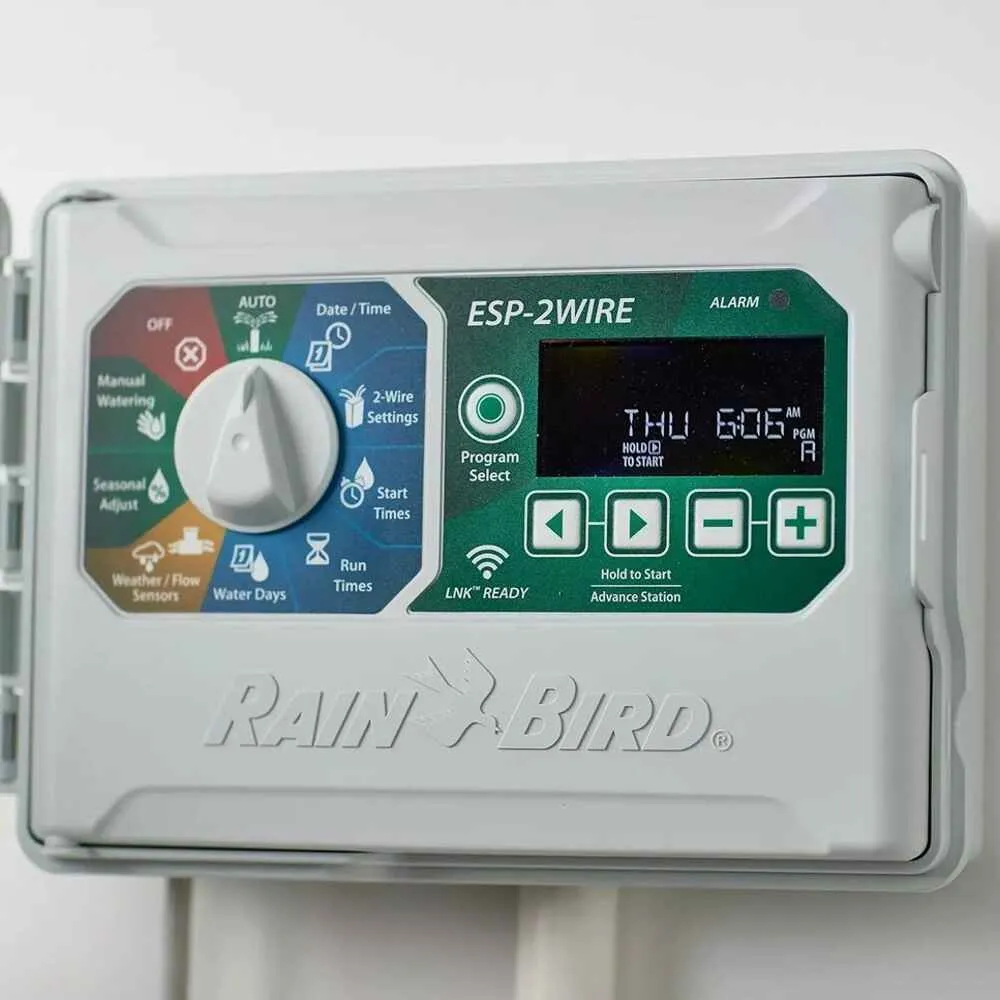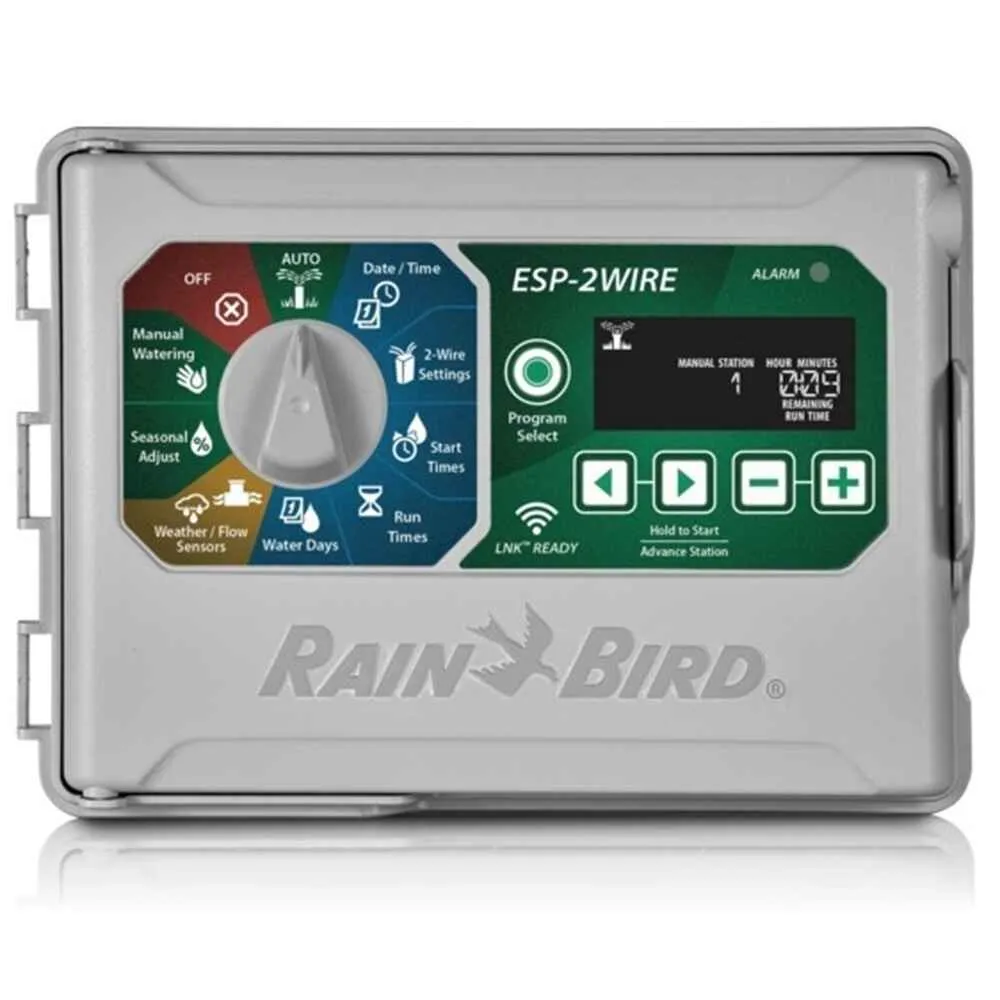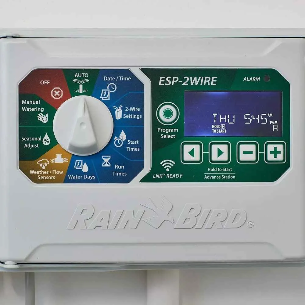 Dekodérová řídící jednotka Rain Bird ESP-2WIRE je navržena pro efektivní správu závlahových systémů s využitím dvojdrátové technologie. Umožňuje snadnou instalaci a rozšíření systému až na 50 sekcí bez potřeby složitého kabelování. Díky funkci automatického přiřazení dekodérů (Decoder Auto-Address) jsou všechny připojené dekodéry automaticky detekovány a přiřazeny k odpovídajícím sekcím, což šetří čas při instalaci.