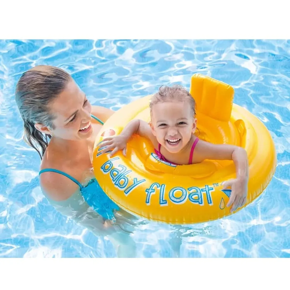 Dětské nafukovací sedátko do vody Intex o průměru 70 cm je vhodný pro první vodní zážitky. Výrazná žlutá barva zvyšuje viditelnost a integrované sedátko zabrání propadnutí dítěte do vody.
