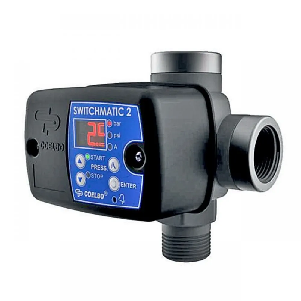 Tlakový spínač T-KIT SWITCHMATIC 2 je zařízení pro ovládání jednofázových čerpadel s výkonem do 2,2 kW. Díky integrovanému digitálnímu manometru umožňuje přesné měření tlaku a jednoduché nastavení zapínacího i vypínacího tlaku pomocí intuitivního ovládacího panelu.