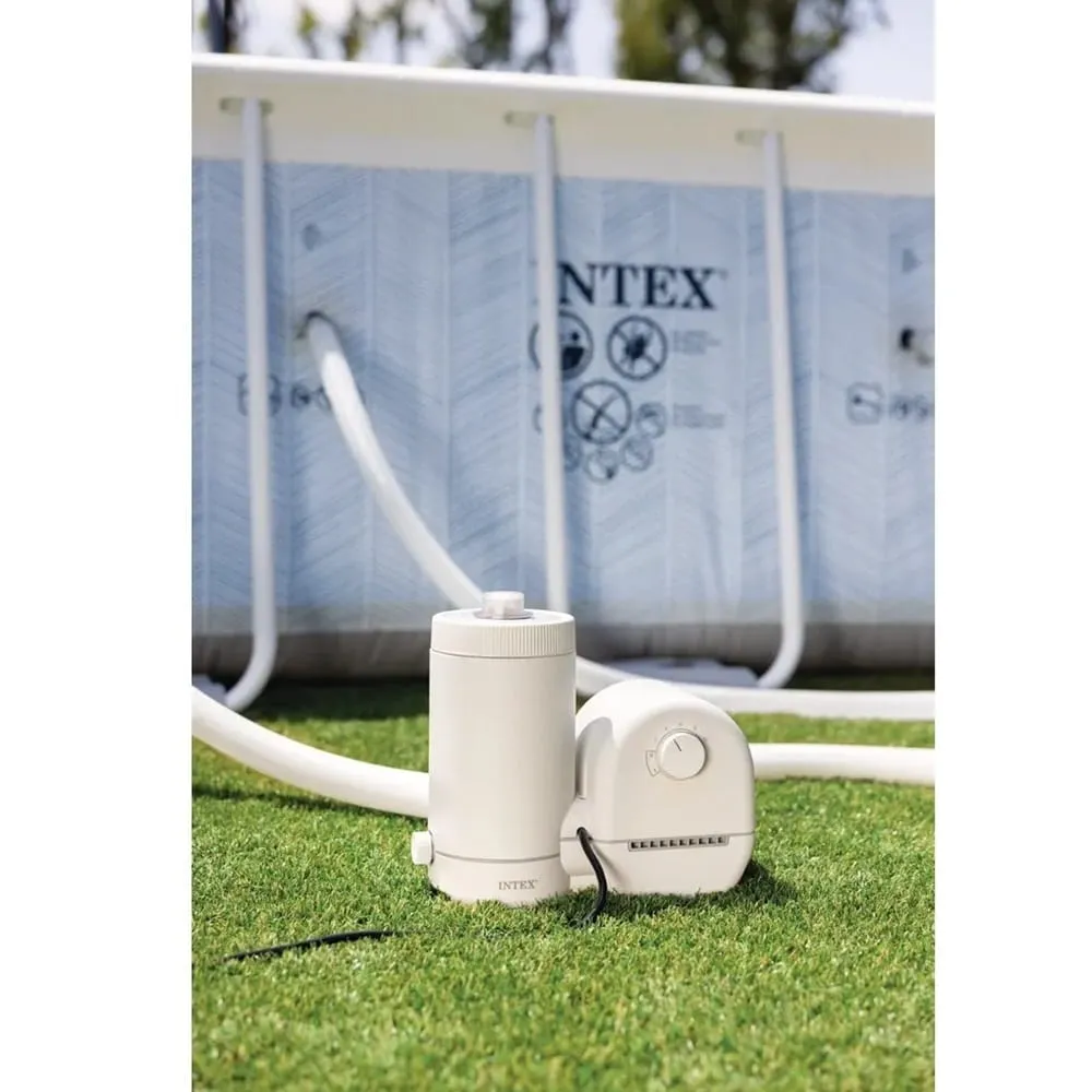 Filtrace Intex C1500 je vybavena integrovaným časovačem, který umožňuje nastavit automatický provoz filtrace na 2, 4, 6, 8 nebo 12 hodin. Díky tomu se filtrace spouští pravidelně bez nutnosti ručního zapínání, zajišťuje rovnoměrnou cirkulaci vody a usnadňuje každodenní údržbu bazénu.