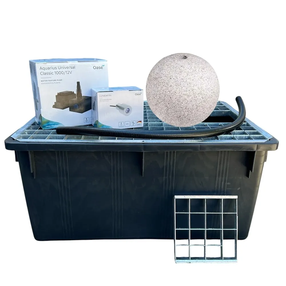 Vše potřebné v jednom balení. Od čerpadla, přes nádrž až po LED osvětlení. - Žulová koule průměr 22 cm
