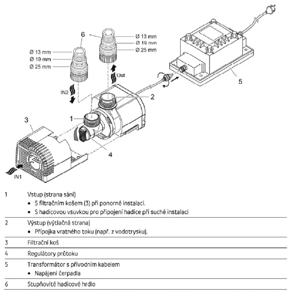Všechny komponenty spolu perfektně fungují a zajišťují optimální provoz fontány.