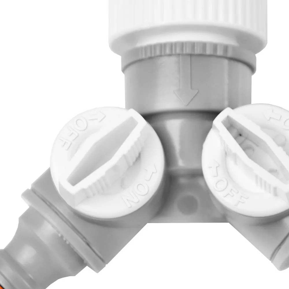 Rozbočka má dva na sobě nezávislé uzávěry vody s regulací průtoku.