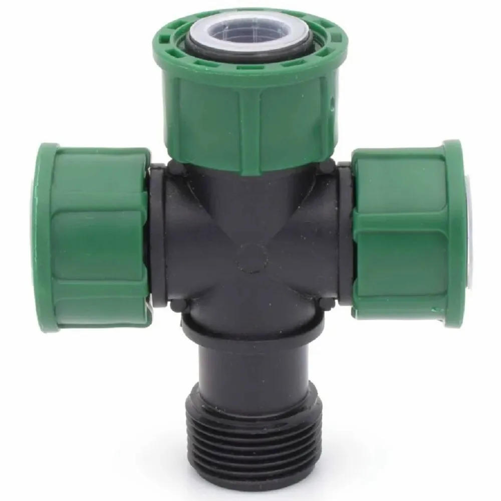 Holendrový kříž Irritec ve variantě M-F-F-F s převlečnými matkami (holendery) a těsněním pro použití k rozvodům vody zpravidla k závlahovým systémům a zajištění její kvalitní distribuce. Vhodný pro profesionální instalace.