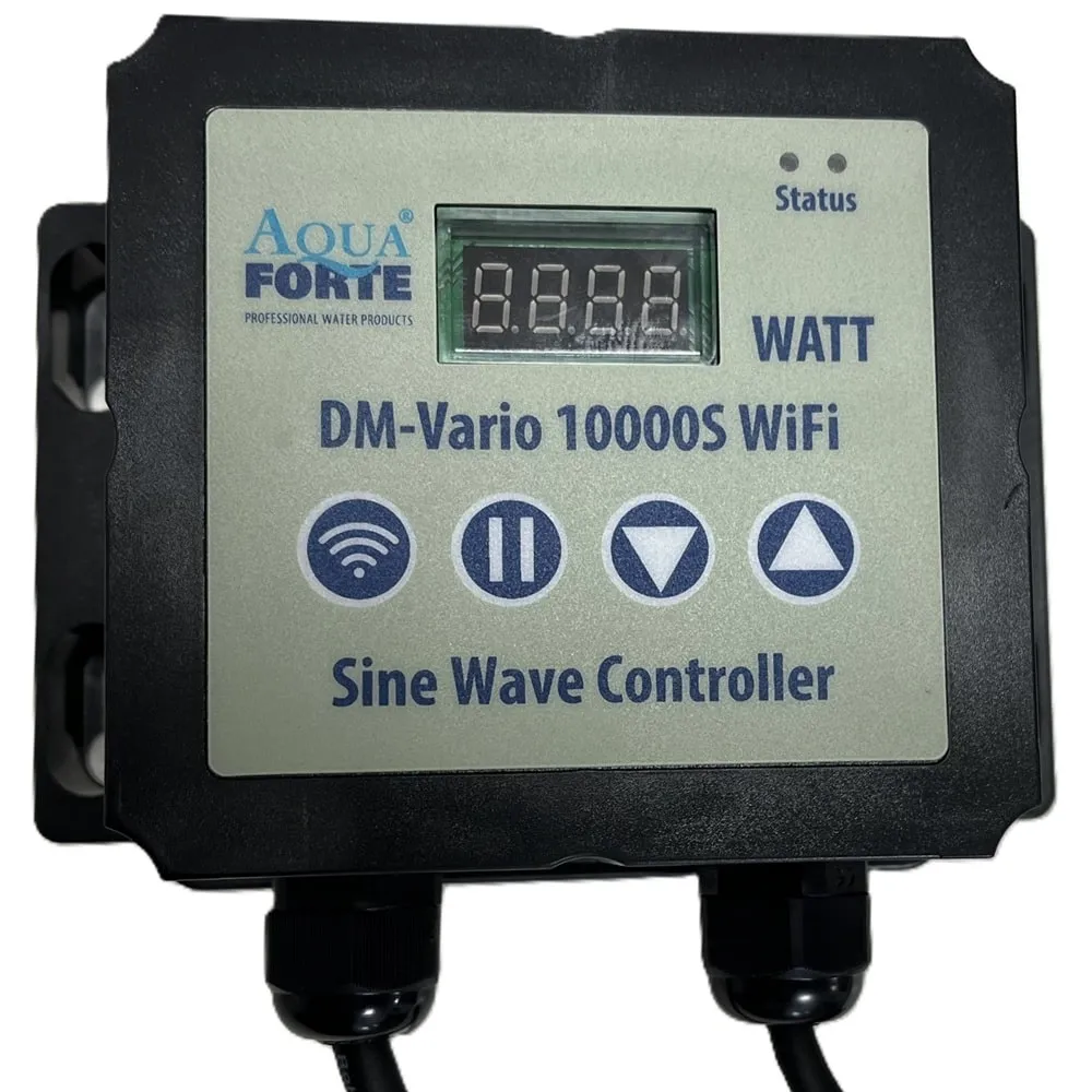AquaForte DM Vario S-10000 WiFi je moderní jezírkové čerpadlo s přesnou regulací výkonu a možností pohodlného ovládání přes mobilní aplikaci. Nabízí velmi tichý chod, nízkou spotřebu energie s průtokem až 10000 l/h, výtlakem 5,5 m a příkonem 26 - 85 W.