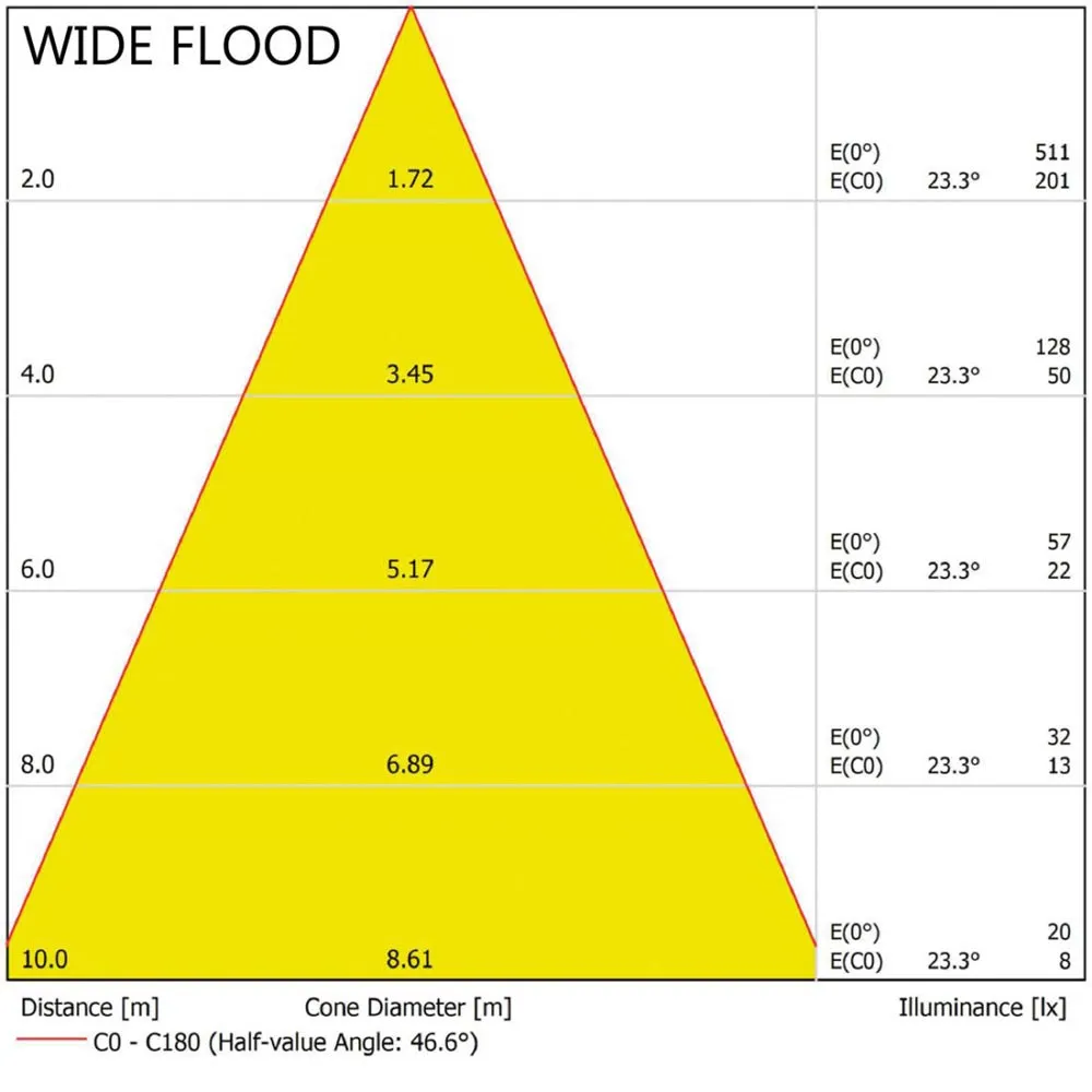 Úhel vyzařování světelného paprsku je 45°. V řadě osvětlení LunAqua Power LED XL 3000 je možné vybrat si z více typů světel. Světla se liší úhlem vyzařování světelného paprsku (10°,15°,30°,45°). Platí pravidlo: Čím nižší úhel vyzařování paprsku, tím větší vzdálenost světla.