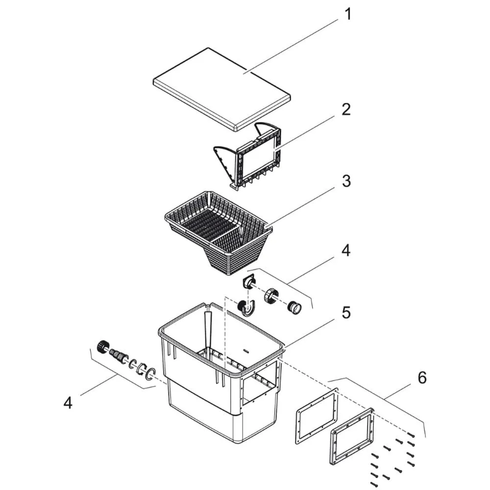 Nečistoty se usazují ve velkém plastovém koši, který je snadno přístupný a lze jej ze skimmeru snadno vyjmout, jednoduše vyčistit a dát zpět.