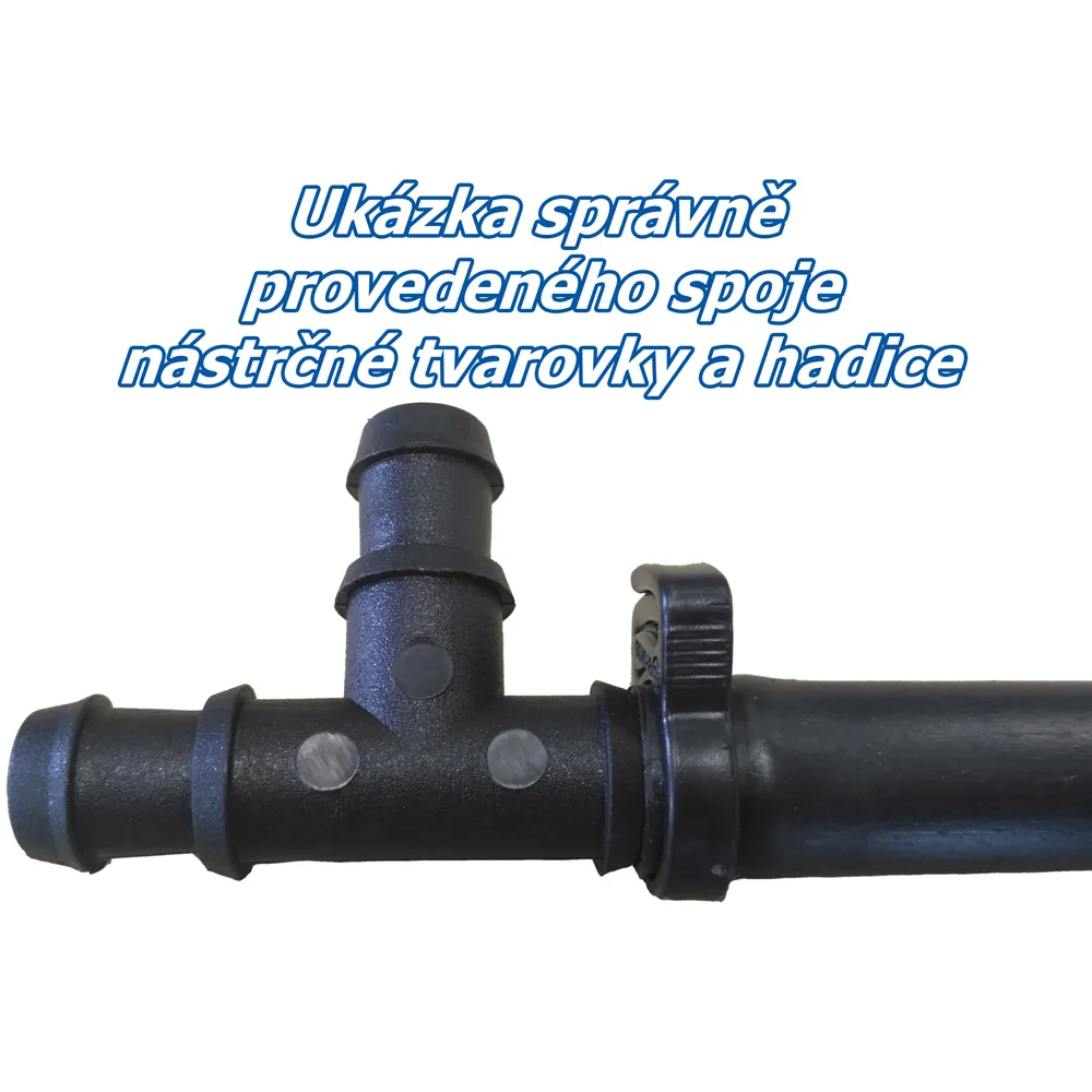 K vytvoření těsného a pevného spoje doporučujeme k nastrkávací tvarovce použít hadicovou sponu 20 mm.