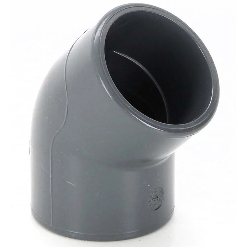 PVC koleno průměr 40 mm, 45°, lepení x lepení.