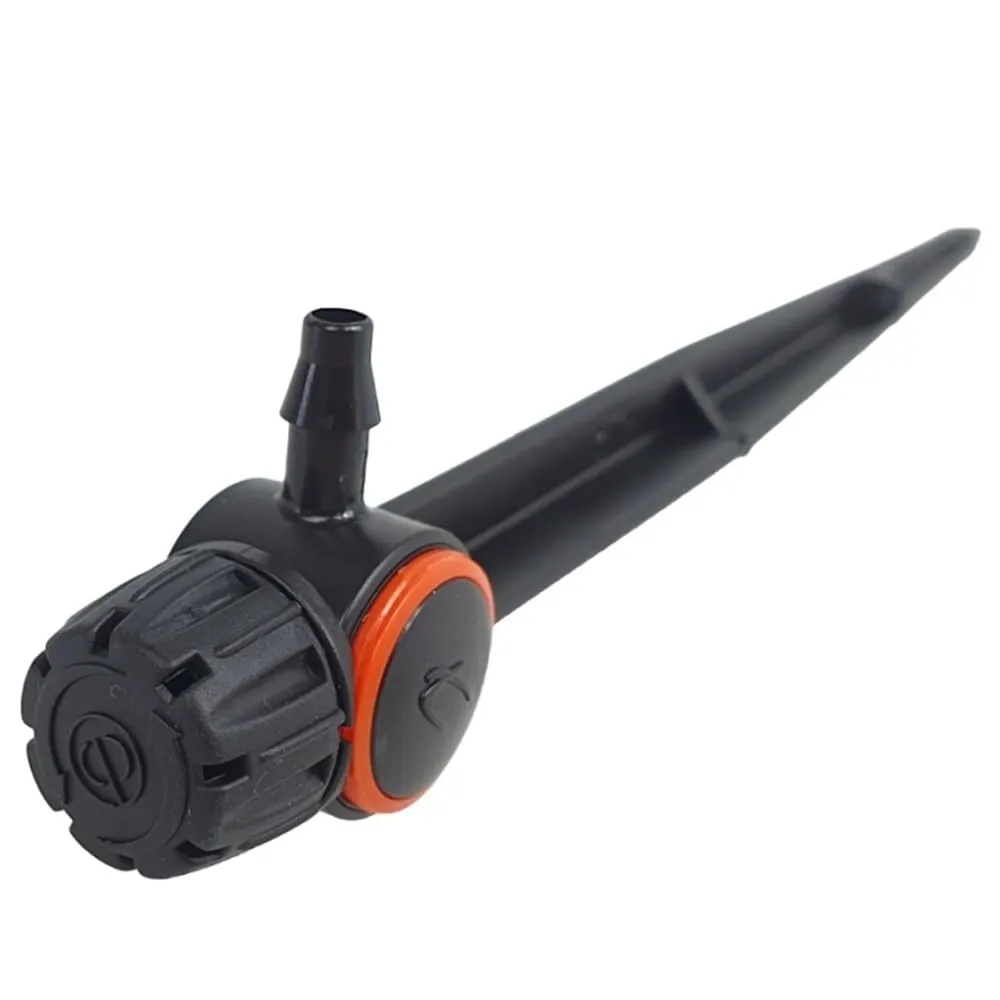 - Regulace průtoku z vrchní části mikropostřikovače umožňuje precizní nastavení průtoku vody od 0 do 31,8 l/h a dostřik až do 0 - 0,40 m , což zajišťuje optimální zavlažování podle konkrétních potřeb rostlin