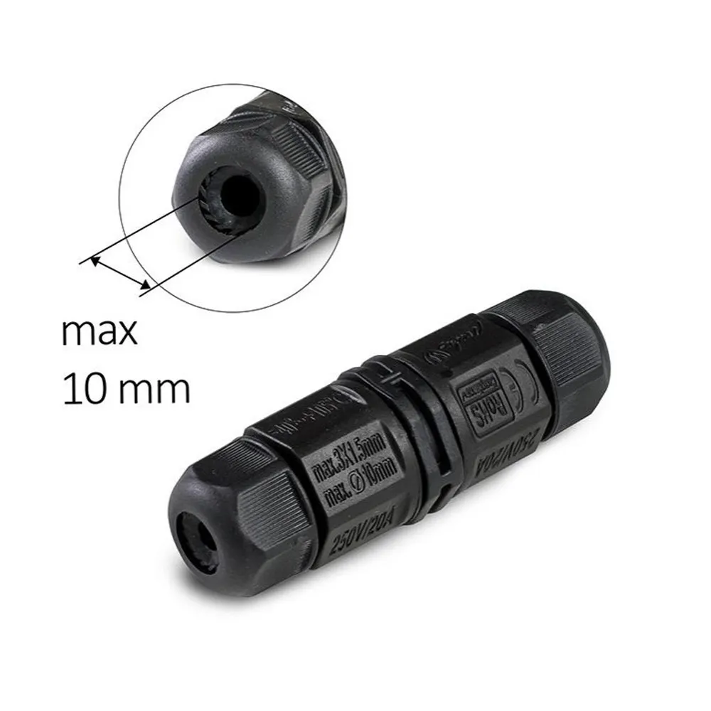 Nedes kabelový konektor s ochranným krytím IP67 je ideální ke spojení kabelů ve venkovním prostředí, instalace je možná i do země do hloubky až 1 m.