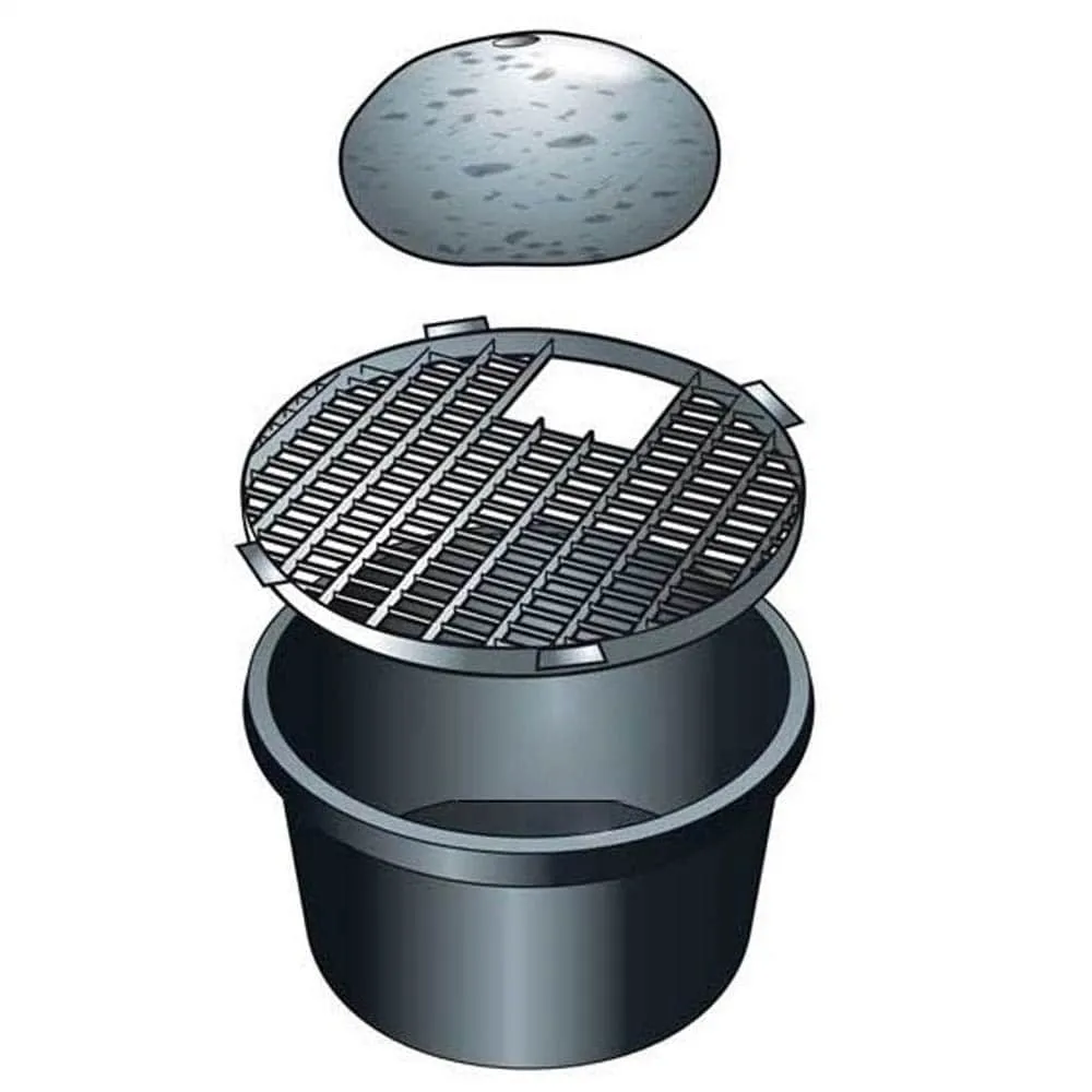 Plochu víka tvoří rošt s oky 5x5 cm a otvor 20x20 cm, který slouží pro snadný přístup do nádrže např. při regulaci čerpadla. Tento otvor je možný zaslepit odnímatelným vkládacím kusem.Krycí rošt je umístěn na hraně nádrže.