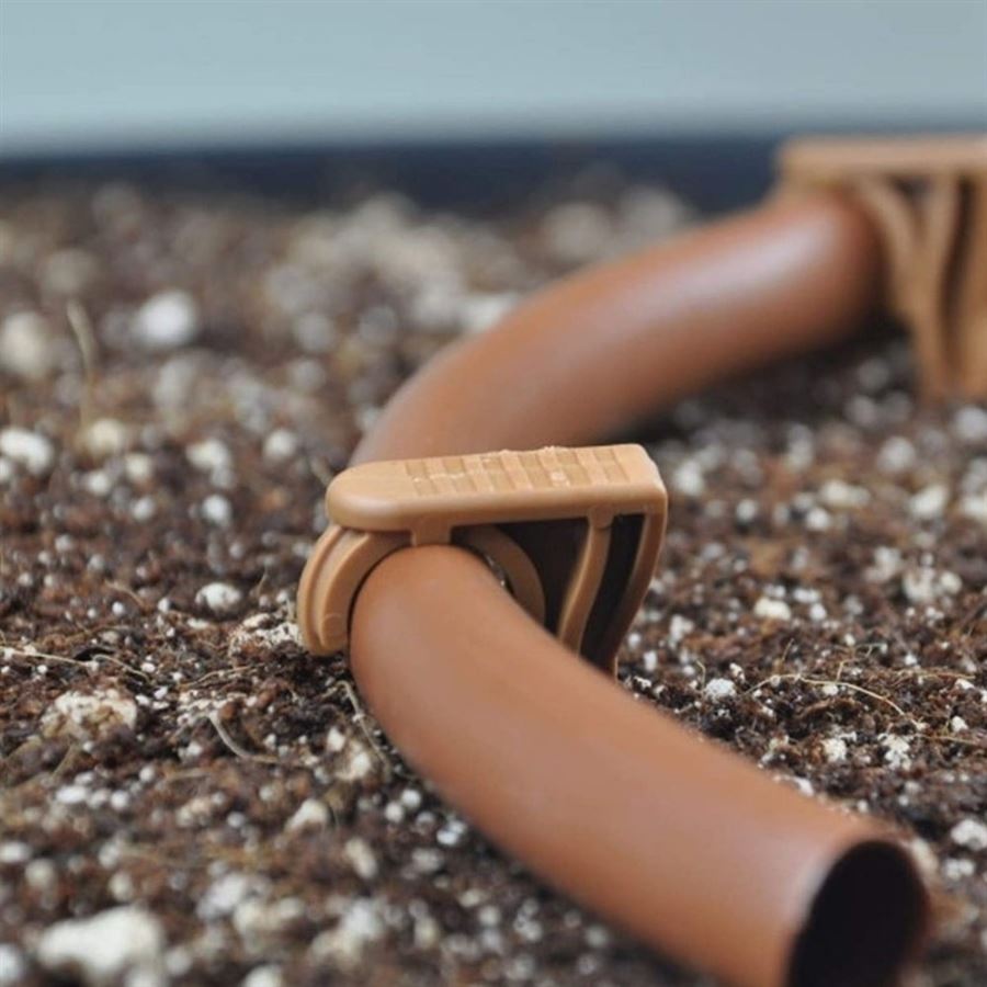 Tento držák využijete v záhonech, sklenících i sadech, kde pomáhá udržet zavlažovací systém přehledný a spolehlivý.