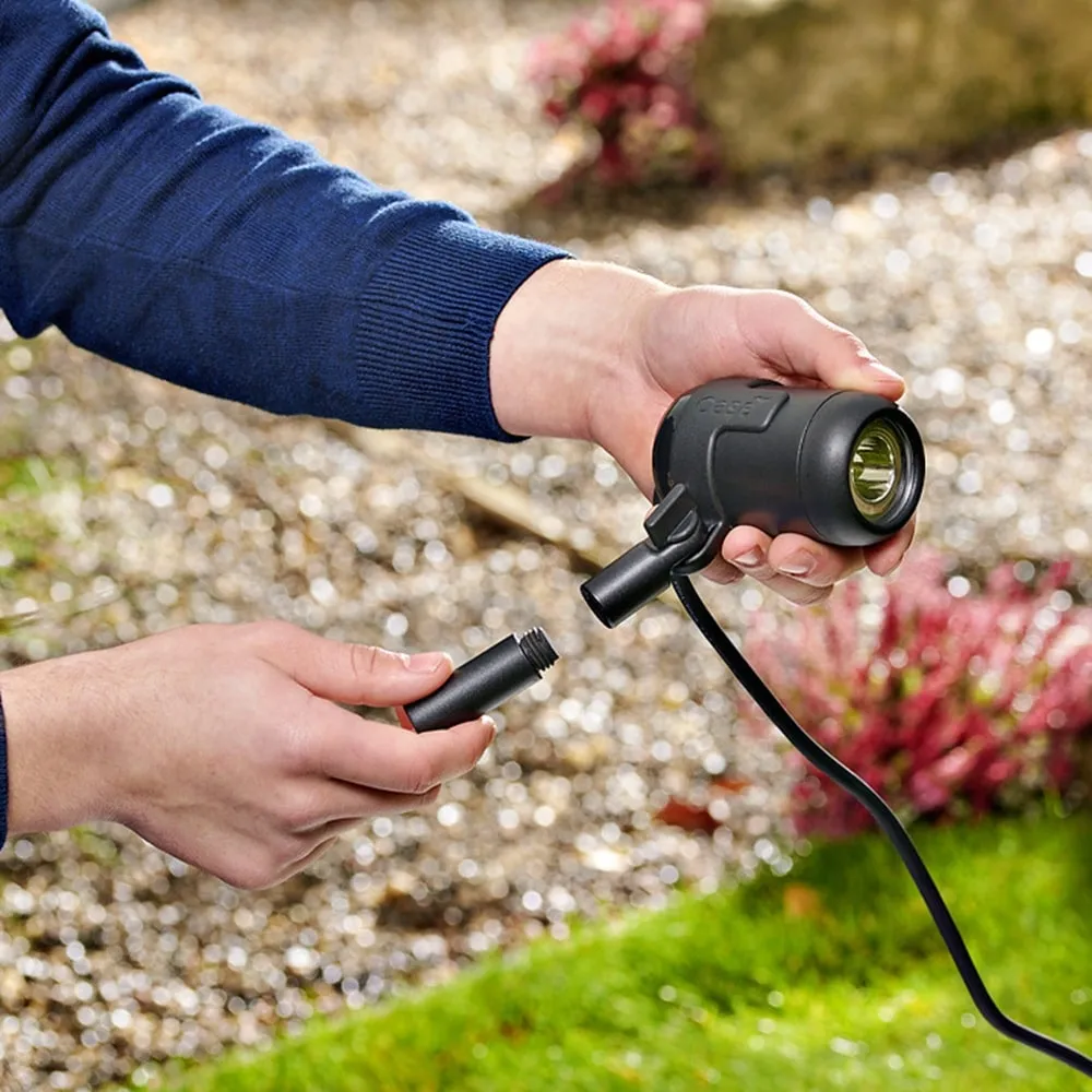 - L (500 lm, Ø 61 x 98 mm): Pro osvětlení vyšších stromů a větších zahradních prvků do výšky až 10 m.