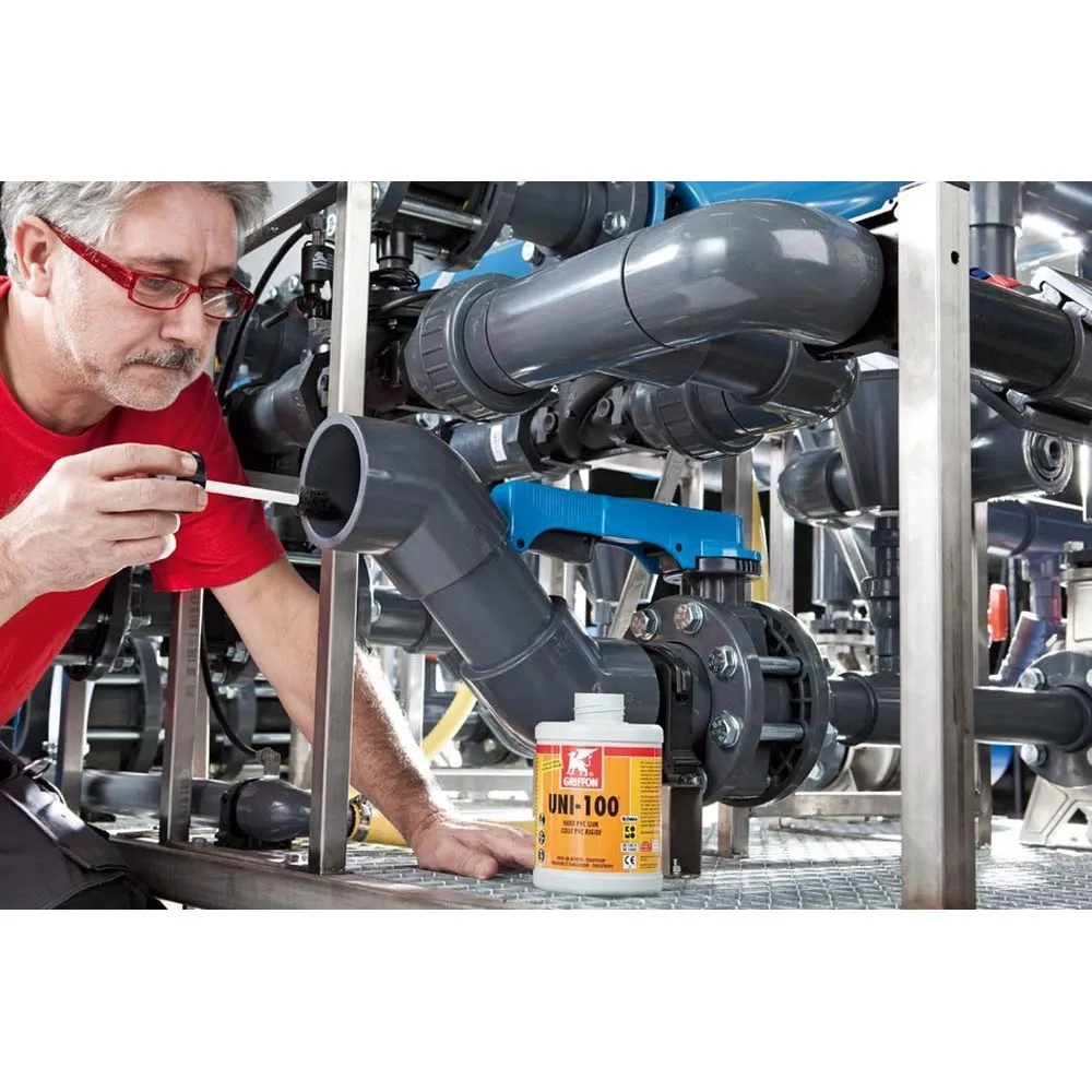 Griffon lepidlo UNI-100 je speciálně formulováno pro lepení PVC trubek, flexi hadic, fitinek a dalších PVC komponentů, včetně foliových přírub a dnových vpustí. Díky speciálnímu složení zajišťuje vysokou odolnost a dlouhou životnost spojů, které vydrží nároky času a používání.