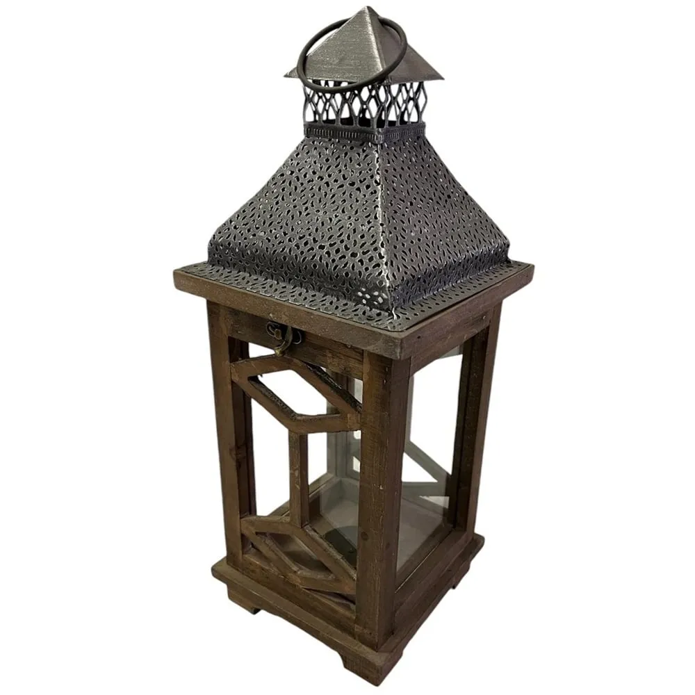 Malá dřevěná lucerna 16,5 x 16,5 x 41,5 cm hnědá