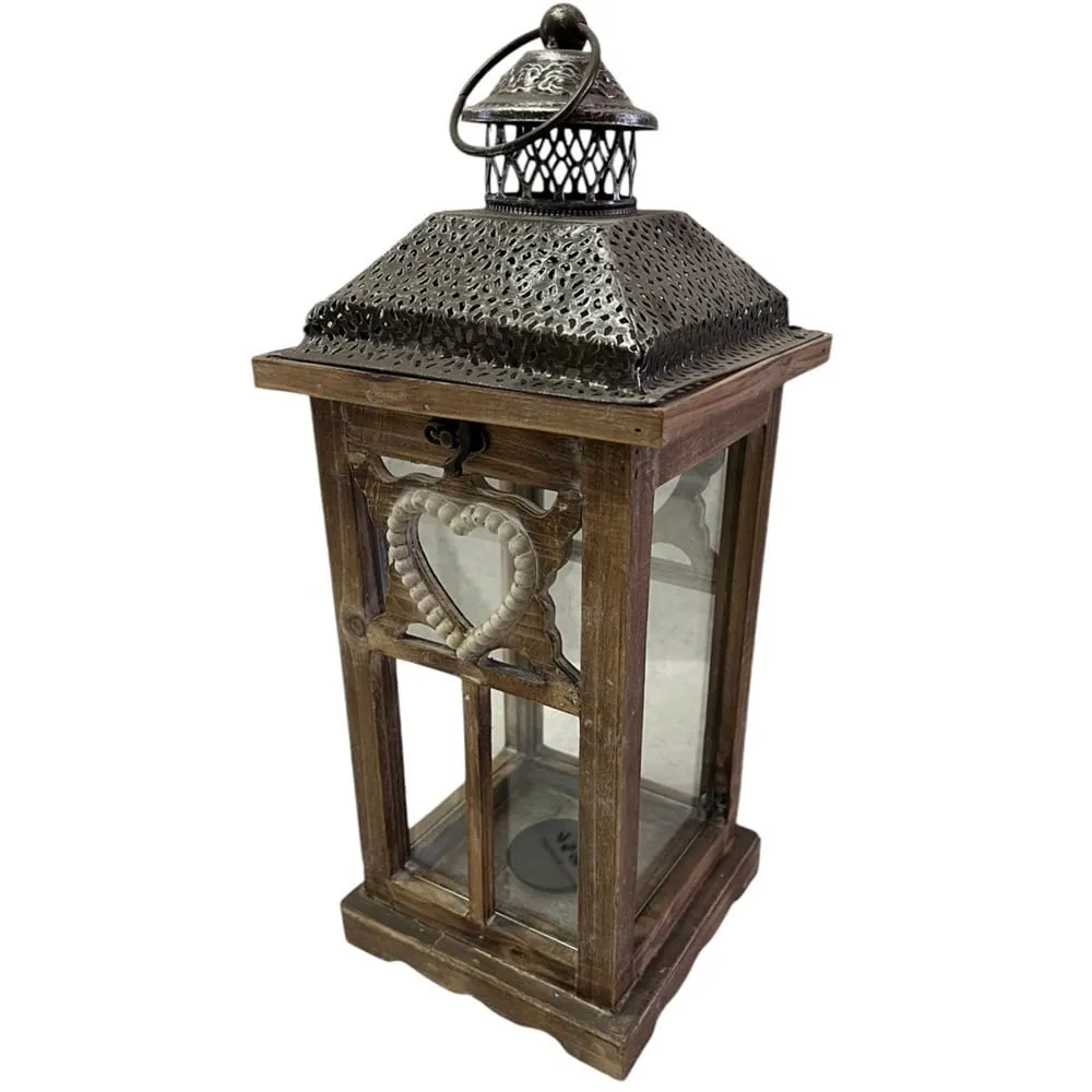 Malá dřevěná lucerna 17 x 17 x 42 cm hnědá