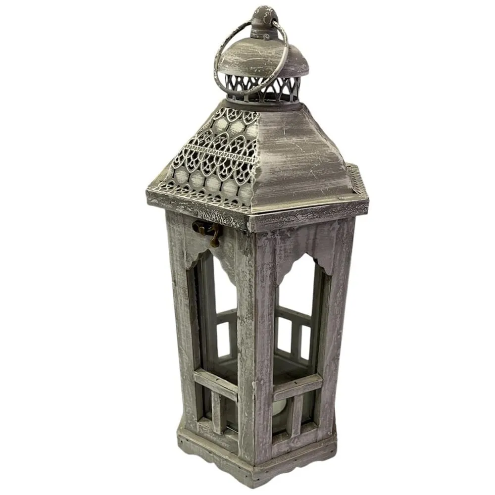 Malá dřevěná lucerna 19 x 17 x 39,5 cm šedobílá