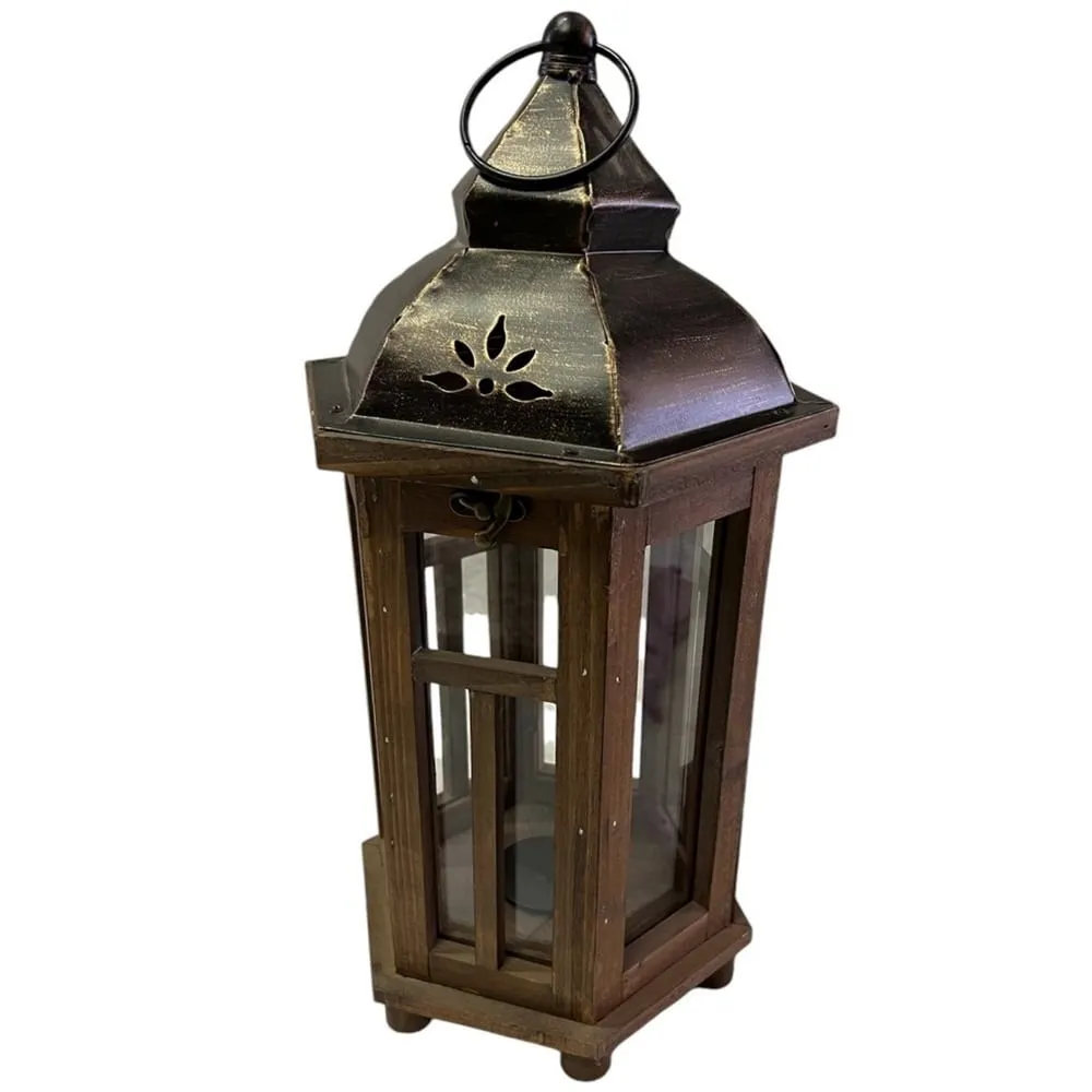 Malá dřevěná lucerna 21 x 18,5 x 39 cm hnědá