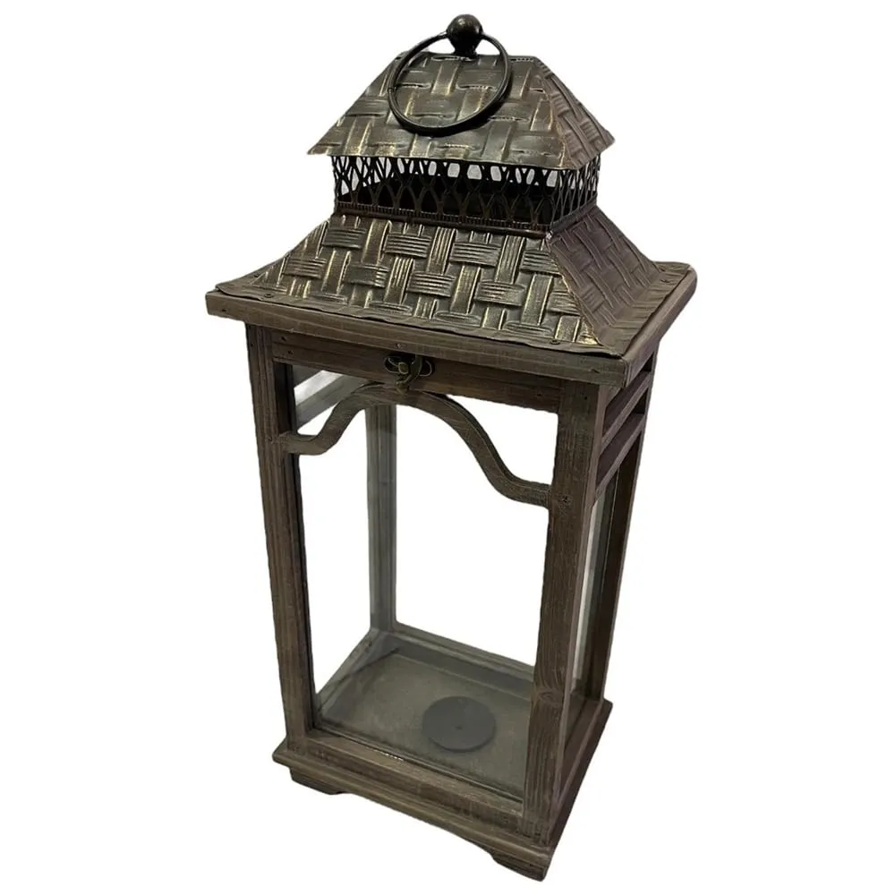 Malá dřevěná lucerna 22,5 x 17 x 50,5 cm šedohnědá