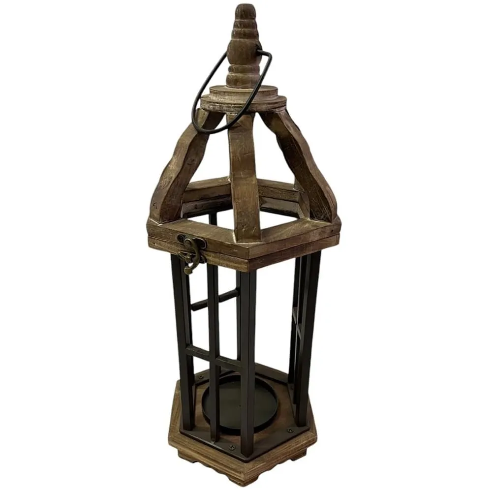 Malá lucerna dřevo kov 19 x 16,5 x 45 cm hnědá
