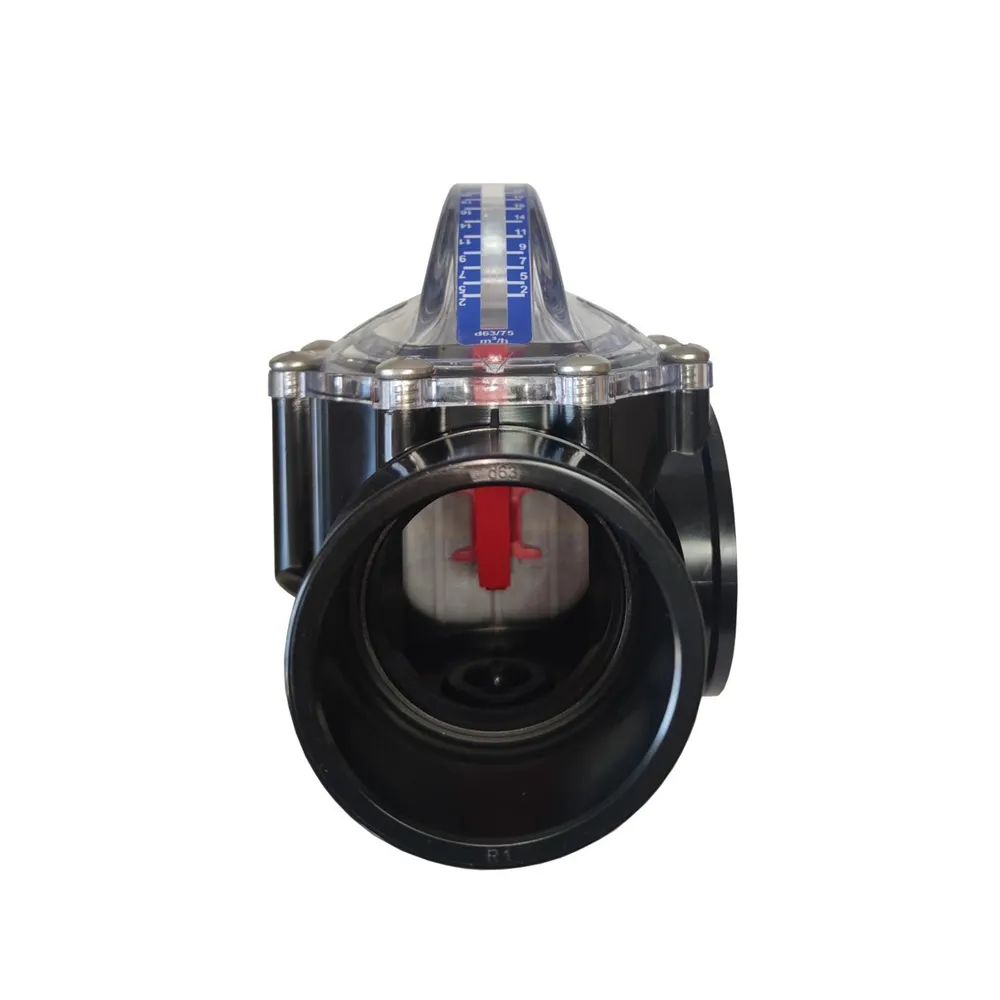 Se zvyšujícím se průtokem se klapka postupně posouvá do otevřené polohy. Její aktuální poloha odpovídá rychlosti průtoku, který je okamžitě viditelný na kalibrované stupnici na víku zařízení. Hodnota je přesně zobrazena v litrech za minutu.